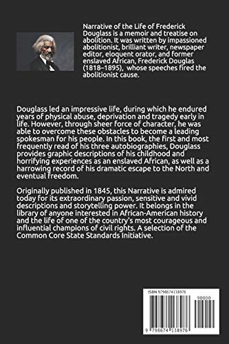 Narrative of the Life of Frederick Douglass is a memoir and treatise on abolition. It was written by impassioned abolitionist, brilliant writer, newspaper editor, eloquent orator, and former enslaved African, Frederick Douglas (1818-1895), whose speeches fired the abolitionist cause.Douglass led an impressive life, during which he endured years of physical abuse, deprivation and tragedy early in life. However, through sheer force of character, he was able to overcome these obstacles to become a leading spokesman for his people. In this book, the first and most frequently read of his three autobiographies, Douglass provides graphic descriptions of his childhood and horrifying experiences as an enslaved African, as well as a harrowing record of his dramatic escape to the North and eventual freedom. Originally published in 1845, this Narrative is admired today for its extraordinary passion, sensitive and vivid descriptions and storytelling power. It belongs in the library of anyone interested in African-American history and the life of one of the country’s most courageous and influential champions of civil rights. A selection of the Common Core State Standards Initiative.