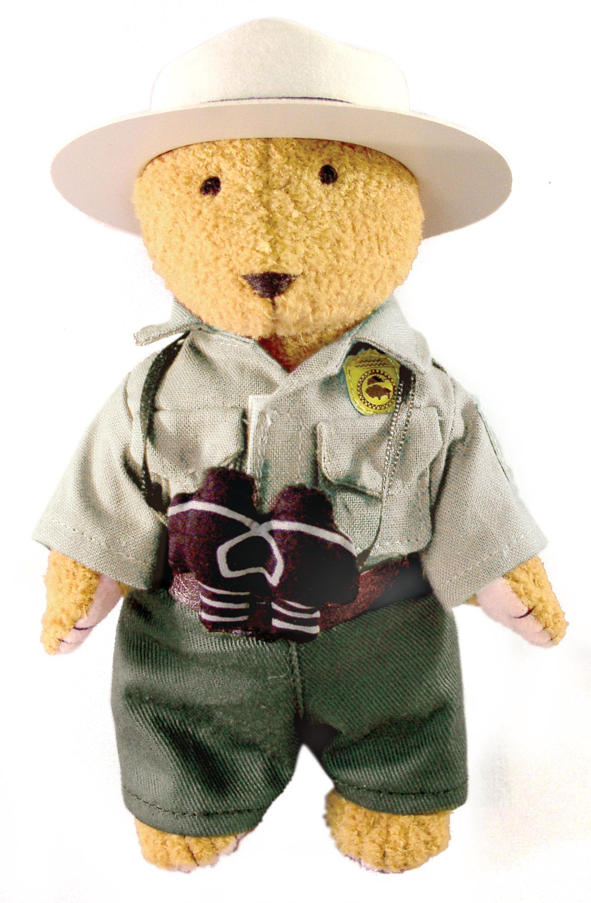 - MerryMakers Park Ranger Bear 6.5″ has all the details from a Ranger hat and uniform to the work belt and binoculars. These special places need special people like the Park Rangers of the National Park Service and you to help protect them. Rangers wear many hats in the field – storyteller, law enforcer, wildlife biologist, botanist, and fire fighter, to name a few. Appropriate for ages 3+. Surface wash only.