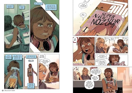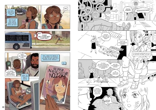 A charming POC-led WLW romance where two new friends hit the road in search of the missing volumes of their favorite manga. Neesha Sparks is a disabled, vocal community activist with a passion for costume design. Gabby Graciana is an optimistic surfer – and, like Neesha, a new kid at school. When the two girls discover that they like the same manga series, Navigator Nozomi, they become more than just fellow new kids. But it was more than just having read the same book series–neither of them had finished it! Soon, they become new friends on a mission – to track down the remaining Navigator Nozomi books. This slice-of-life romance follows the two girls as they adventure across North Carolina to find each book, with their story intercut with the tales of Navigator Nozomi. Neesha and Gabby find more than just the books though–they find acceptance, friendship, understanding, and love.