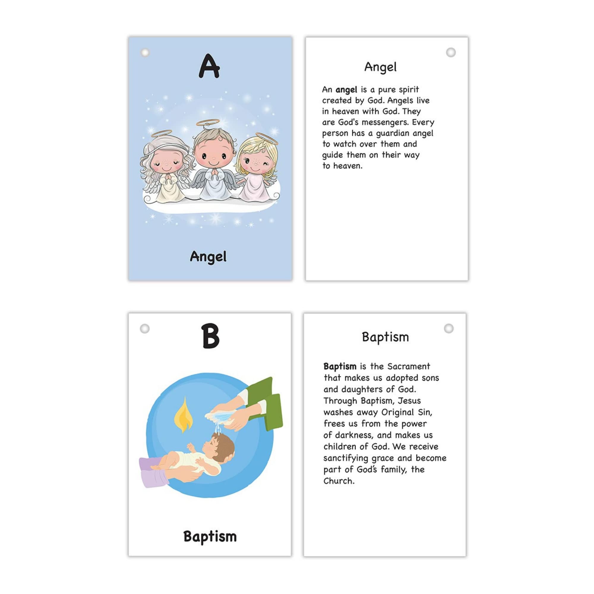 COLLECTIBLE religious educational card set features Things to See at Church LEARNING just got a little more fun with these flash cards. Teach boys and girls about the fundamentals of mass FLIP cards include a colored image, title and explanation of how it relates to mass DURABLE card stock set is laminated and connected with a split metal ring. Size: 4-3/8 x 6-1/4″ H GREAT educational activity for boys or girls taking steps in their faith