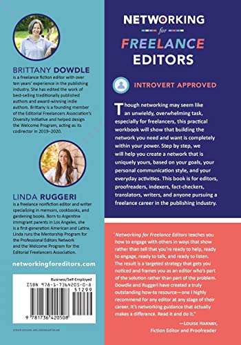 A practical workbook to grow your professional network–without the stress. In this workbook, you’ll learn how to: Let go of outdated, pressure-filled ideas about networking that no longer serve you Follow a simple, step-by-step strategy for building lasting professional relationships Use guided worksheets to design a networking practice that plays to your strengths and delivers results Created for editors, proofreaders, writers, indexers, fact-checkers, translators, and other freelance publishing professionals, Networking for Freelance Editors helps you take control of your networking with clarity and confidence. Through actionable advice and thoughtfully designed worksheets, this workbook equips you to reimagine how you connect, communicate, and grow your freelance business–on your terms. “Dowdle and Ruggeri have created a truly outstanding how-to resource–one I highly recommend for any editor at any stage of their career. It’s networking guidance that actually makes a difference. Read it and do it.” –Louise Harnby, Fiction Editor and Proofreader Whether you’re just starting out or looking to network more effectively, this accessible, hands-on guide will help you move past impostor syndrome, stop spinning your wheels, and build a professional network that supports your long-term success.