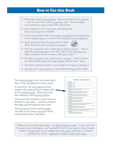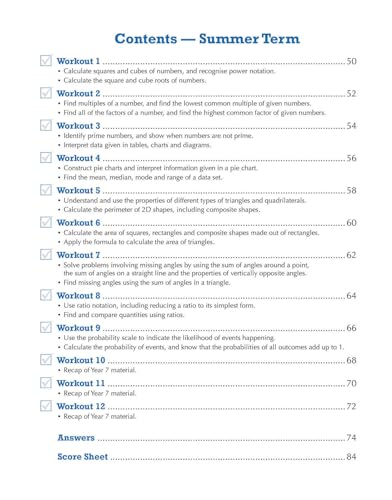 Packed full of ready-made questions for Year 7 pupils — perfect for supporting catch-up at home! This amazing Weekly Workouts book for Year 7 has stacks of bite-sized Maths workouts – one for each week of the school year! Each workout consists of a selection of warm-up questions, followed by more challenging questions and problem-solving activities. This book introduces Year 7 topics gradually, then re-tests them throughout the year – so it’s perfect for helping students practise and remember everything they’ve learned! Answers to each Workout are included at the back of the book, alongside a helpful score sheet to record students’ marks and keep track of their progress. We’ve also drawn up a handy Topic Map to explain where each topic from the curriculum appears in our Weekly Workouts, just in case your school teaches KS3 Maths in a slightly different order to our books – just follow the link inside the book.