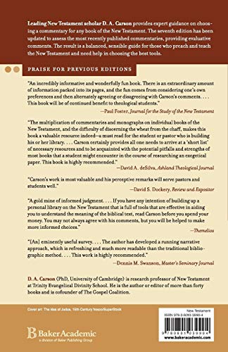 Highly respected New Testament scholar D. A. Carson provides students and pastors with expert guidance on choosing a commentary for any book of the New Testament. The seventh edition has been updated to assess the most recently published commentaries. Carson examines sets, one-volume commentaries, and New Testament introductions and theologies, offering evaluative comments on the available offerings for each New Testament book. This is an essential guide to building a reference library.