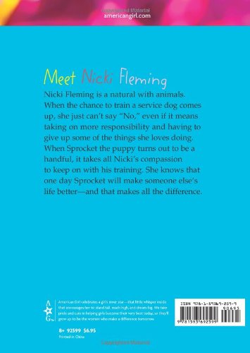 Nicki Fleming is a 10-year-old girl who is a natural with animals. She lives on a working Colorado ranch with her parents and younger brother. She is optimistic, generous, and compassionate, and she loves skiing almost as much as she loves animals. Nicki has a hard time saying “no” to people. Whenever anyone asks for her help, she’s ready to lend a hand. When Nicki says “yes” to becoming the main trainer of a service dog that she and her mother had planned to train together, Nicki ends up in over her head, and struggles to juggle multiple responsibilities: to her parents, her best friend, her teacher–and to the dog. But in the process of training the lively and spirited Sprocket, Nicki’s affection for him grows–even while she keeps reminding herself that she has to give him up to someone who needs him more than she does. Equally important, Nicki learns some important lessons for herself. Book One ends with the with big test–and success!–of Sprocket’s potential as a service dog, and Nicki’s deep pride in their joint accomplishment.