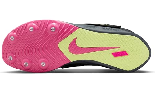 Description Pop a personal best in a model specifically designed for jumping events. Forefoot spikes and secondary heel traction give you confidence in wet or dry conditions on various track surfaces and different takeoff boards. A thick, yet lightweight cushioned heel and a wider shoe base help withstand the demands of jumping at full throttle.