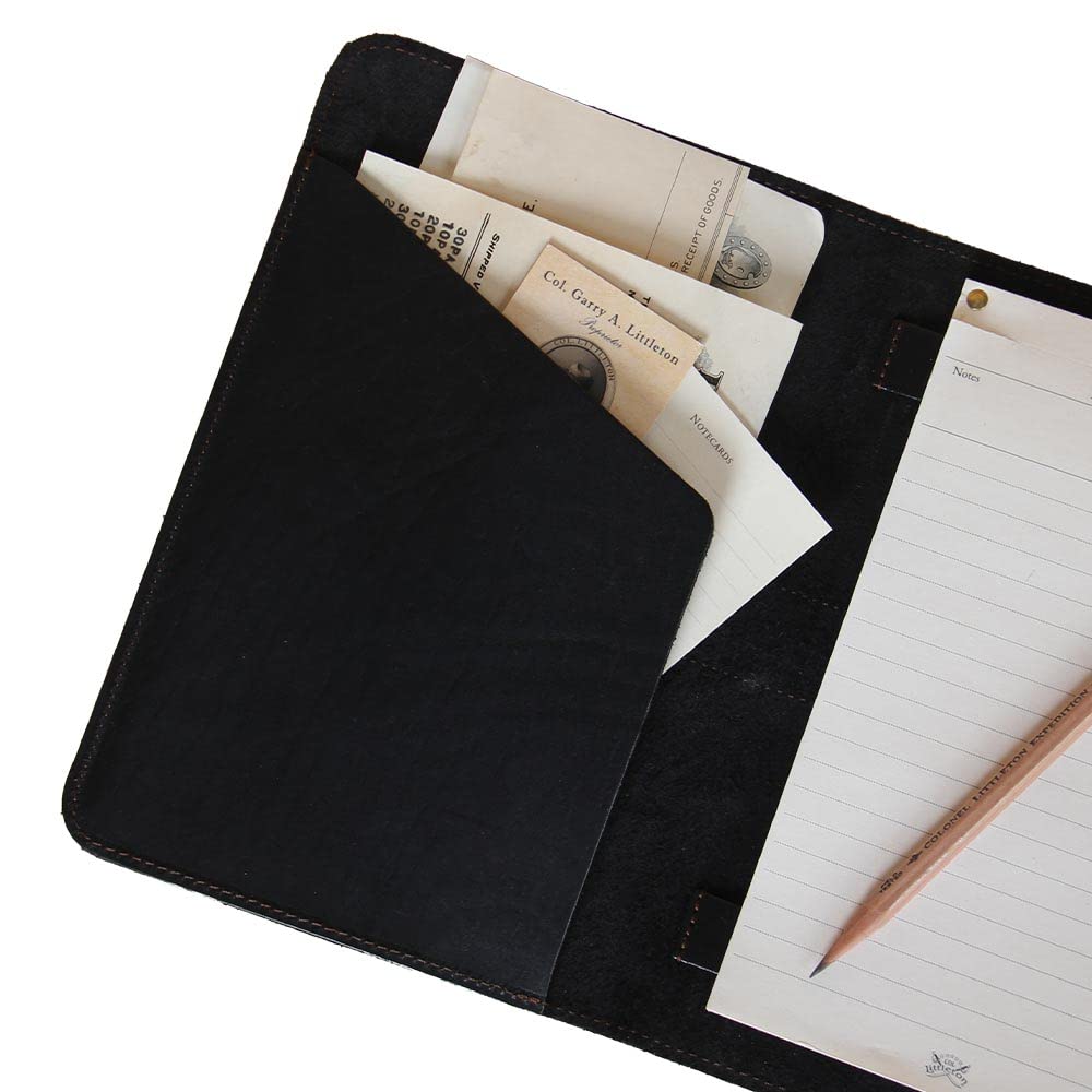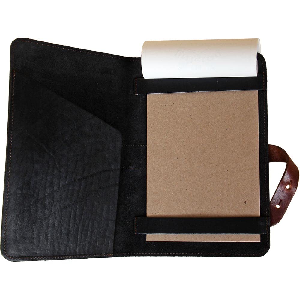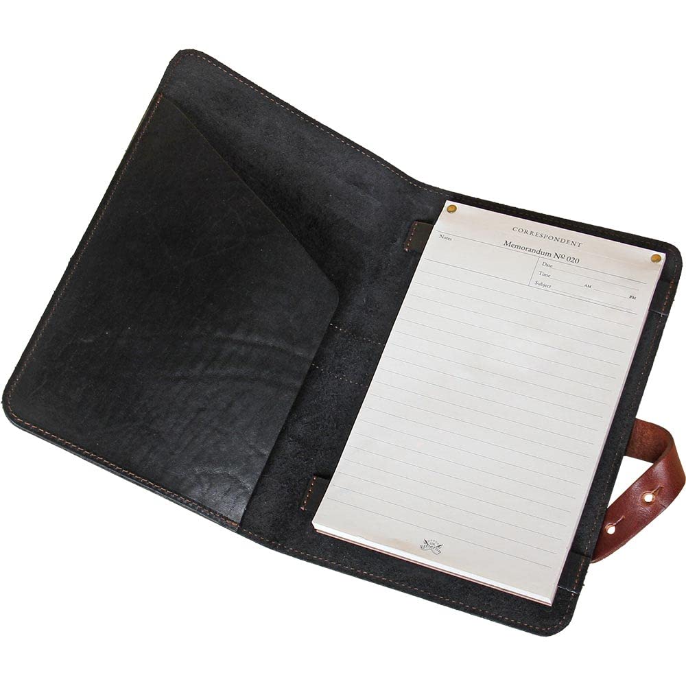 • Small leather portfolio perfect for jotting notes on the go. Handcrafted in Lynnville, TN USA from full-grain steerhide with imported hardware.