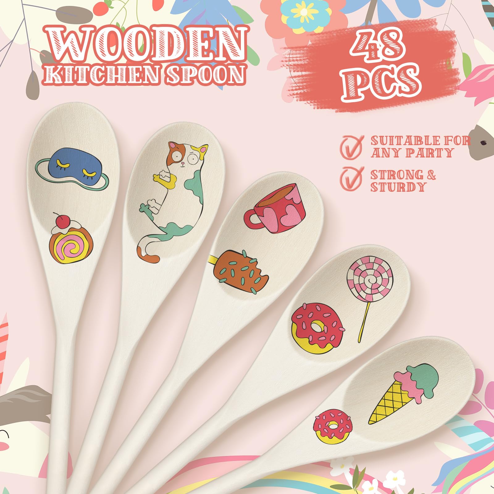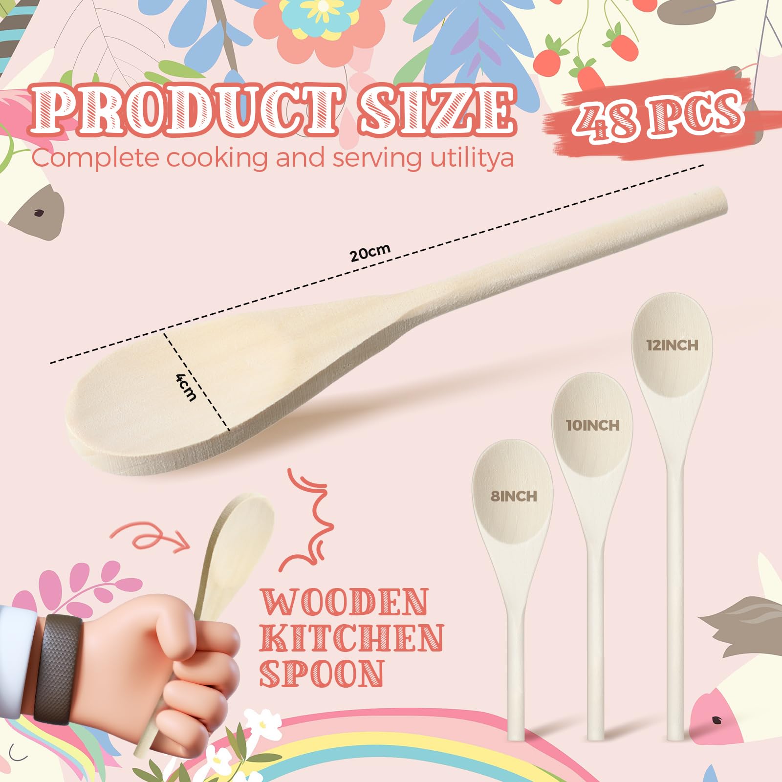 - Package Included: you will receive 48 wooden cooking spoons with 3 different sizes, 16 of each; The sizes of these spoons measure about 8 x 1.57 inches/ 20.5 x 4 cm, 10 x 1.57 inches/ 25.5 x 4 cm and 12 x 1.57 inches/ 30.5 x 4 cm; They not only meet your different scene needs, but also meet various length requirements for dining, cooking, and soup making