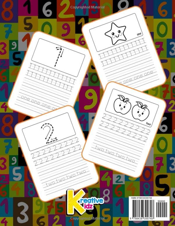 Substitute Screen Time With “Creativity Time” Number Tracing And Handwriting Practice Perfect For Kids Ages 3-5 This classic Number Tracing Book is great for kids to develop their fine motor skills and to learn their letters through tracing and handwriting. Plenty of Practice with Over 70 Pages On White Paper 2 Pages for each Number from 1 to 30 Number Practice on Primary Ruled Lines With Dotted Mid Line Each Page IncludesBlank Primary Ruled Lines for Handwriting Practice Each Number Includes Simple Large Pictures To Count and Color Includes 10 Blank Practice Pages Large 8.5 x 11 In Pages (21.6 X 27.9 cm) Perfect For Kids In Preschool and Kindergarten Facilitate your child’s creative process and help them discover the worlds that exist in their minds and the joy that comes from creating something they can be proud of to show off to family and friends.