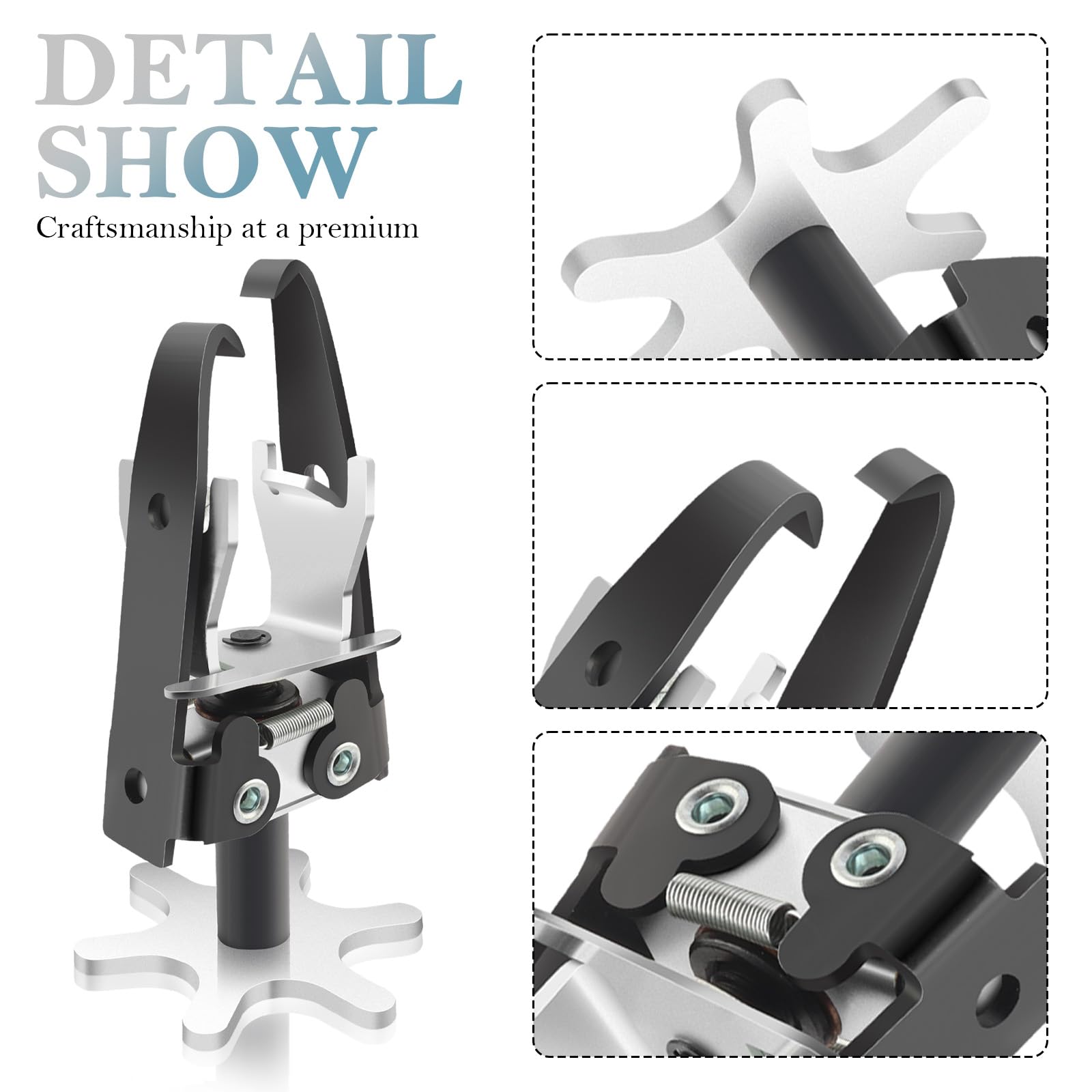 - Firmly Grip: The spring compressor is made of double-jaw sets of different lengths, this offset jaws are able to disperse the spring pressure evenly, so that the compressor always remains horizontal during the compression process, makes removal simpler