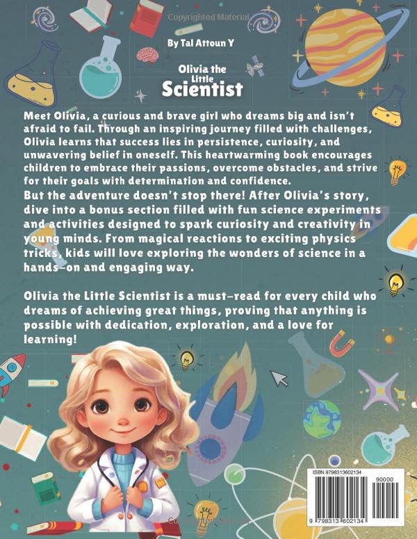 Tal Attoun #1 bestselling! Inspire your child to dream big, embrace challenges, and never give up! Meet Olivia, a curious and determined young girl who loves science, problem-solving, and discovery. But when things don’t go as planned, she learns that real success comes from persistence, curiosity, and belief in oneself. Perfect for fans of classic children’s books and parents searching for popular children’s books that foster confidence and resilience, this heartwarming story teaches kids the power of perseverance. Olivia’s journey encourages young readers to embrace their passions, overcome obstacles, and never stop learning. But the adventure doesn’t end with Olivia’s story! After her journey, kids can explore entire section filled with exciting science experiments and activities. From magical reactions to hands-on discoveries, this interactive section makes learning fun and inspires young minds to think like real scientists. Whether your child loves science, inventing, or simply enjoys inspiring stories, Olivia the Little Scientist is a must-have addition to any kids’ books list. With engaging storytelling, hands-on experiments, and a powerful message, this book will help shape young minds to believe that anything is possible with dedication and perseverance.