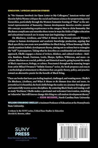 Develops a theoretical and methodological focus on Blackness to rethink ideas about humanity underpinning the field of student development. Winner of the 2025 Outstanding Book Award presented by the Division B of the American Educational Research Association In “No Humans Involved: An Open Letter to My Colleagues,” Jamaican writer and theorist Sylvia Wynter critiques the social and human sciences for perpetuating social hierarchies, particularly through the Western humanist framing of “Man” as the universal representation of humanity. Human development theories revolve around this concept, necessitating acquiescence to the category Man to claim humanity. But Blackness complicates and unsettles these terms in ways the fields of higher education and educational research are in many ways just beginning to confront. On Blackness, Liveliness, and What It Means to Be Human extends Wynter’s critique to human development and academic knowledge production, arguing that Black specificity can create new possibilities for Black being. Wilson Kwamogi Okello closely examines holistic development theory, aiming not to reform but to reimagine the “self” it presupposes. Taking what he describes as a multimodal and multisensory approach, Okello engages a chorus of writers, thinkers, and cultural workers-Baldwin, Bambara, Brand, Hartman, Lorde, Sharpe, Spillers, Wilderson, and more-to reframe Blackness as a social, political, and historical matrix, going beyond the study of Black experiences, biology, or culture. Punctuated throughout by stunning images from artist Mikael Owunna’s “Infinite Essence” series, the book proposes and enacts a methodological attunement to Blackness that can guide theory, policy, and practice toward an alternative praxis for the benefit of Black living.