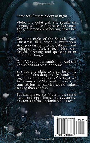 Some wallflowers bloom at night… Violet is a quiet girl. She speaks six languages, but seldom raises her voice. The gentlemen aren’t beating down her door. Until the night of the Spindle Cove Christmas ball, when a mysterious stranger crashes into the ballroom and collapses at Violet’s feet. He’s wet, chilled, bleeding, and speaking in an unfamiliar tongue. Only Violet understands him. And she knows he’s not what he seems. She has one night to draw forth the secrets of this dangerously handsome rogue. Is he a smuggler? A fugitive? An enemy spy? She needs answers by sunrise, but her captive would rather seduce than confess. To learn his secrets, Violet must reveal hers–and open herself to adventure, passion, and the unthinkable… Love.