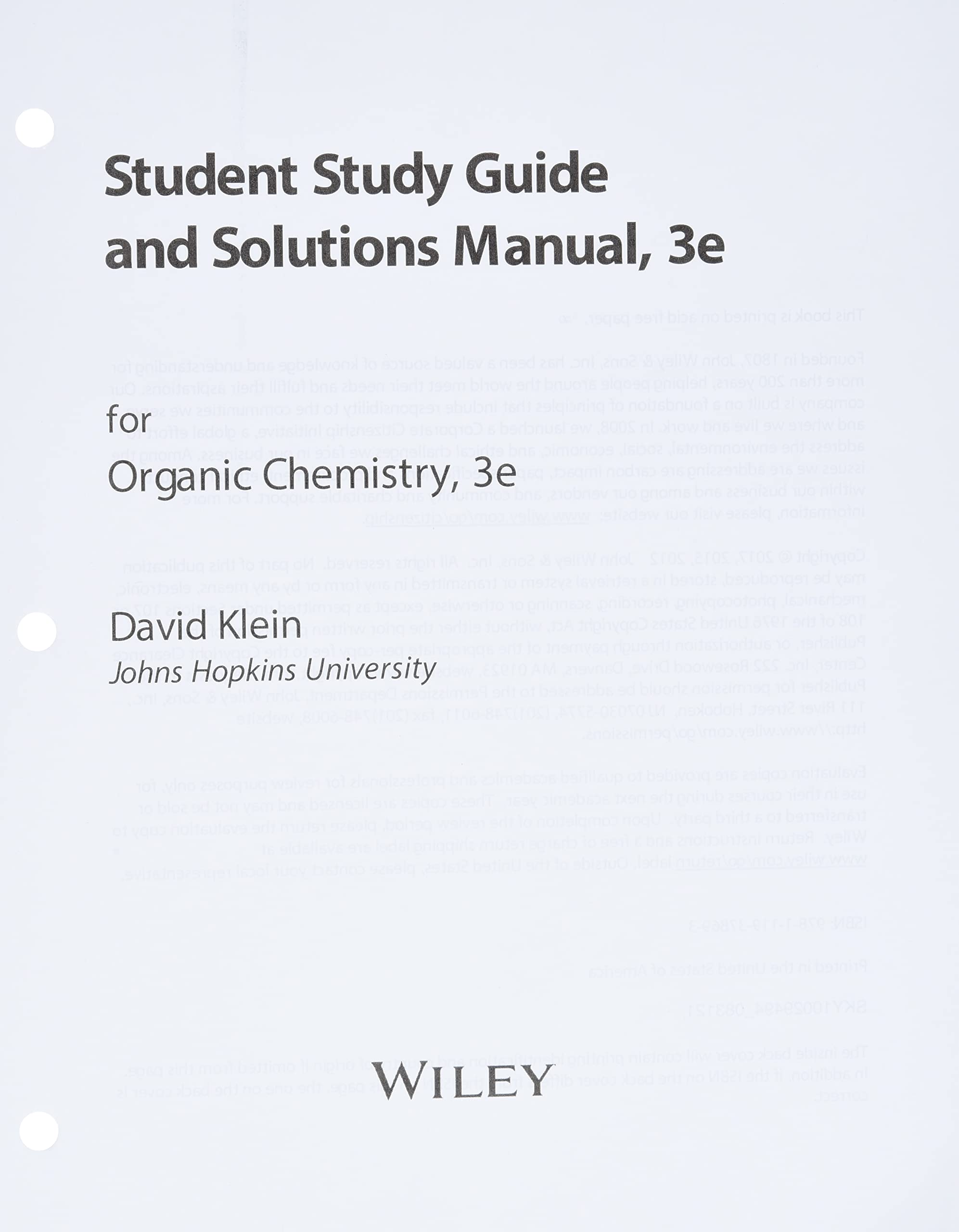 Organic Chemistry, Student Study Guide and Solutions Manual