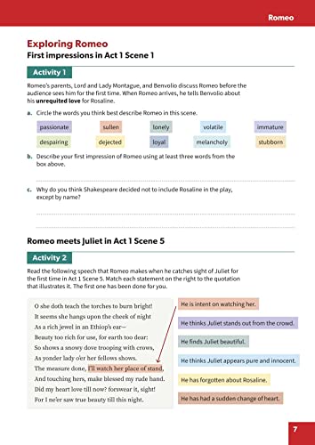 This workbook provides structured activities and exam practice for students studying Shakespeare’s Romeo and Juliet.