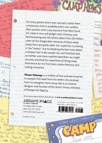 For every parent who&;s ever received a letter from a homesick child or anybody who&;s ever written their parents with crazy requests from their bunk, P.S. I Hate It Here: Kids&; Letters From Camp will delight with hilarious and heartwarming real-life letters. In the bestselling tradition of nostalgic looks at classic rites of passage, such as Camp Camp and Bar Mitzvah Disco, P.S. I Hate It Here: Kids&; Letters from Camp captures a childhood experience shared by millions. This collection of real letters written by children ages eight to sixteen to their parents about their adventures at summer camp are laugh-out-loud funny and will have readers reminiscing about their own camp days. More than 150 letters cover all the imaginable scenarios of sleep away camp, from acing the cabin lice inspection, to rowing in the &;ricotta&; race, to breaking the bad news about a retainer lost in the wilderness. These letters reveal that kids are wittier and more sophisticated than we might assume, and that the experience of being away from home for the first time creates hilarious and lasting memories. Inspired by her daughter’s “melodramatic rants” from camp, Diane Falanga collected 150 hilarious, poignant letters from kids 8-16 … Read it and remember. – People Magazine Whether your kid is in camp or you cherish your own memories of s’mores and Color Wars, you’ll get a kick out of P.S. I Hate It Here! , a book of real-life, laugh-out-loud letters from camp. – Redbook Magazine Kids just left for sleepaway camp? See how their letters from home measure up to the humorous missives in the new book “P.S. I Hate It Here: Kids’ Letters From Camp” by Diane Falanga, a collection of more than 150 real letters. – Newsday ‘P.S. I Hate It Here’ compiles notes home from camp with love – a handsome, actually quite beautiful, little book. – Chicago Tribune Trust me when I tell you that not only will your kids get a kick out of the amazingly funny letters contained in this book, you and your friends will too. – Chicago Parent Magazine This collection of kids’ actual letters home brings back all the hilarity and homesickness of sleepaway camp. Each image displays children’s creative spelling, their pleading to be picked up or for permission to stay “just two more weeks.” Parents and seasoned campers will enjoy reading this collection and laughing at (or commiserating with) these familiar dilemnas: “I hate it here! The letter before this about me starting to have fun was not true …” – San Diego Family Magazine