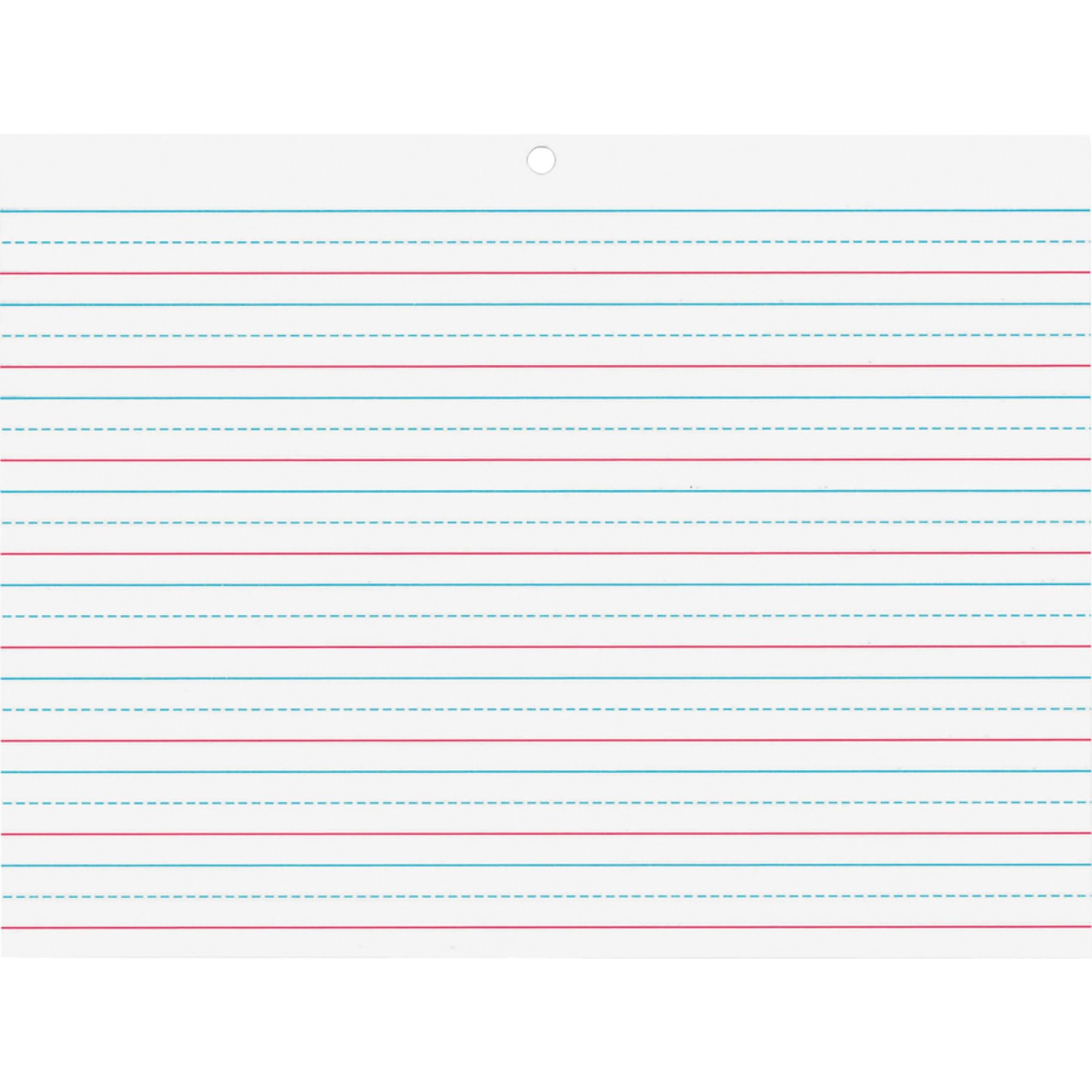 - Headlines are blue, baselines are red; features 5/8″ ruling, 5/16″ dotted midline and 5/16″ skip space.