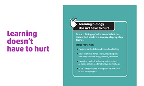 Whether you’re a student or an adult looking to refresh your knowledge, Barron’s Painless Biology provides review and practice in an easy, step-by-step format. An essential resource for: Virtual Learning Homeschool Learning pods Supplementing classes/in-person learning Inside you’ll find: Comprehensive coverage of biology, including, nature of science, cell anatomy, biochemistry, animals and plants, genetics, and much more Diagrams, charts, and instructive science illustrations Painless tips, common pitfalls, and informative sidebars Brain Tickler quizzes and answers throughout each chapter to test your progress