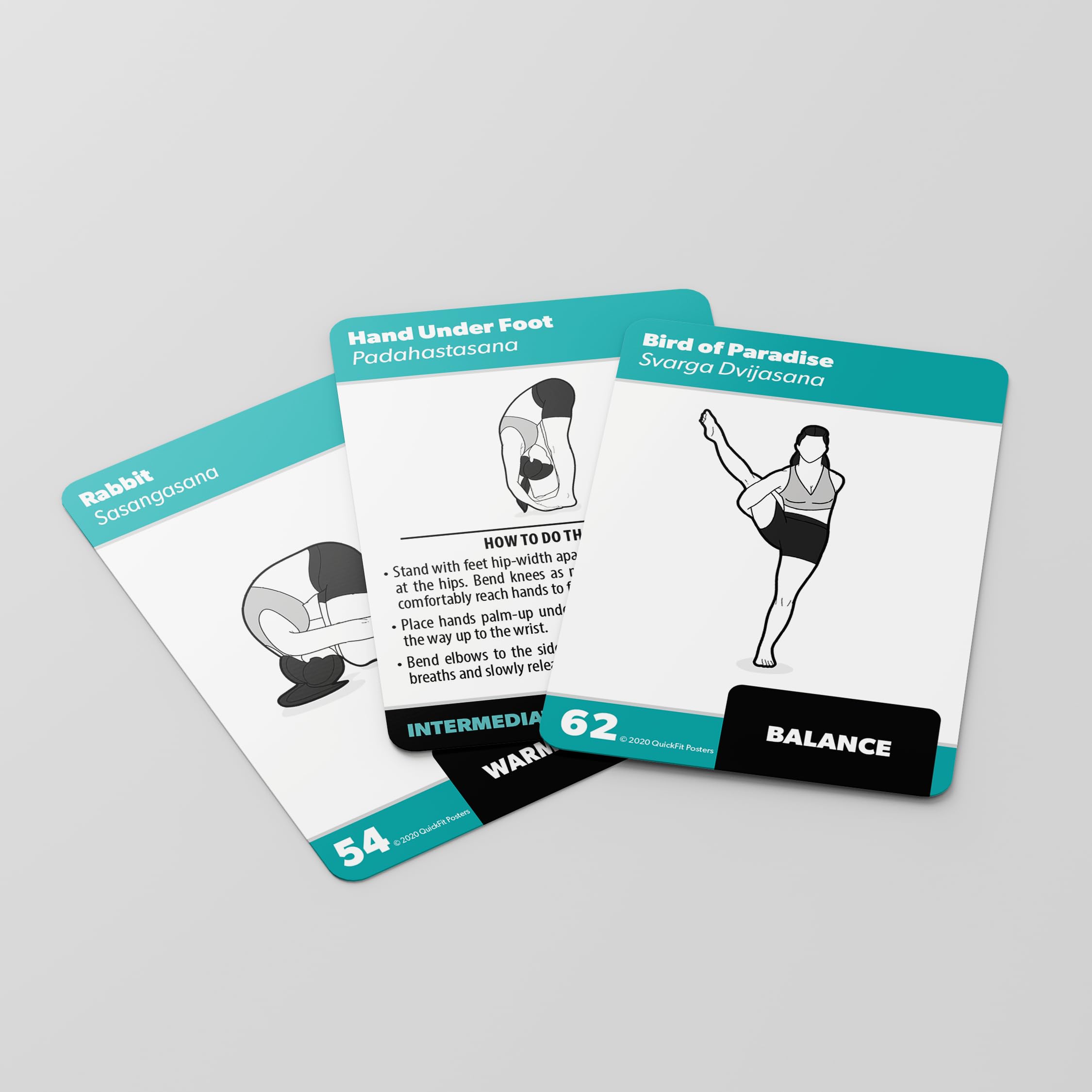 - 50 Dumbbell Workout Cards + 50 Bodyweight Workout Cards + 100 Yoga Pose Exercise Cards