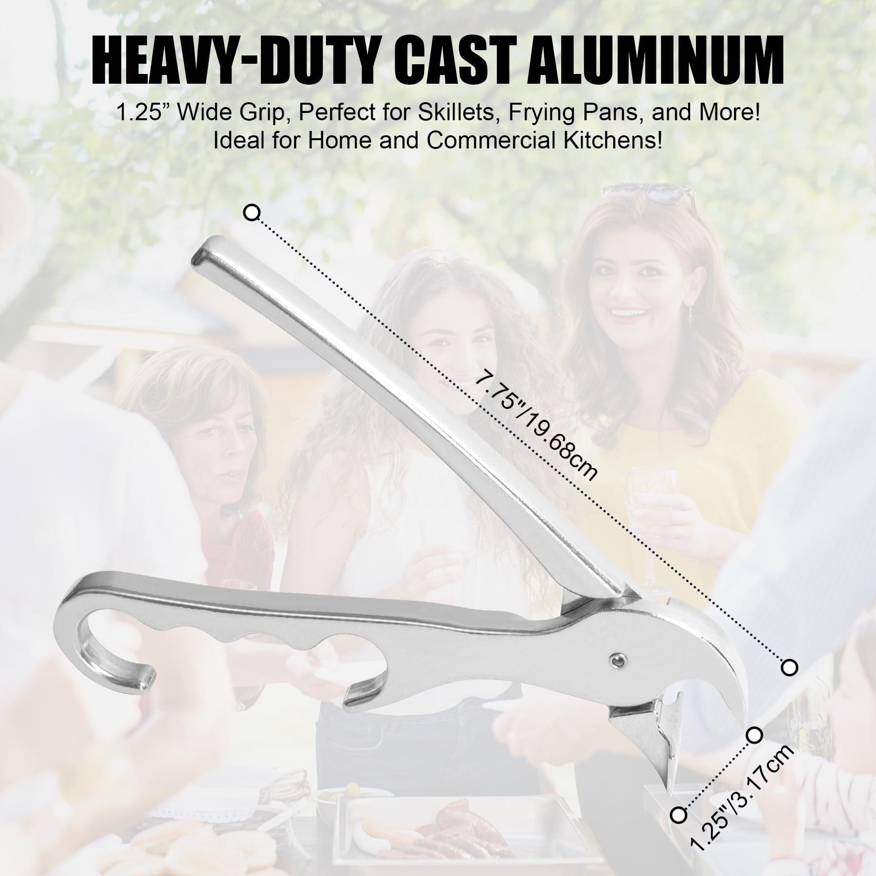 - PREMIUM CAST ALUMINUM CONSTRUCTION: Made from high-quality, heavy-duty Aluminium Alloy, this pan gripper is built to withstand high temperatures, providing a secure and safe way to handle hot dishes, pizza pans, bowls, and pots. Rust-free, durable, and resistant to deformation, it’s an essential tool for any kitchen or outdoor cooking setup.
