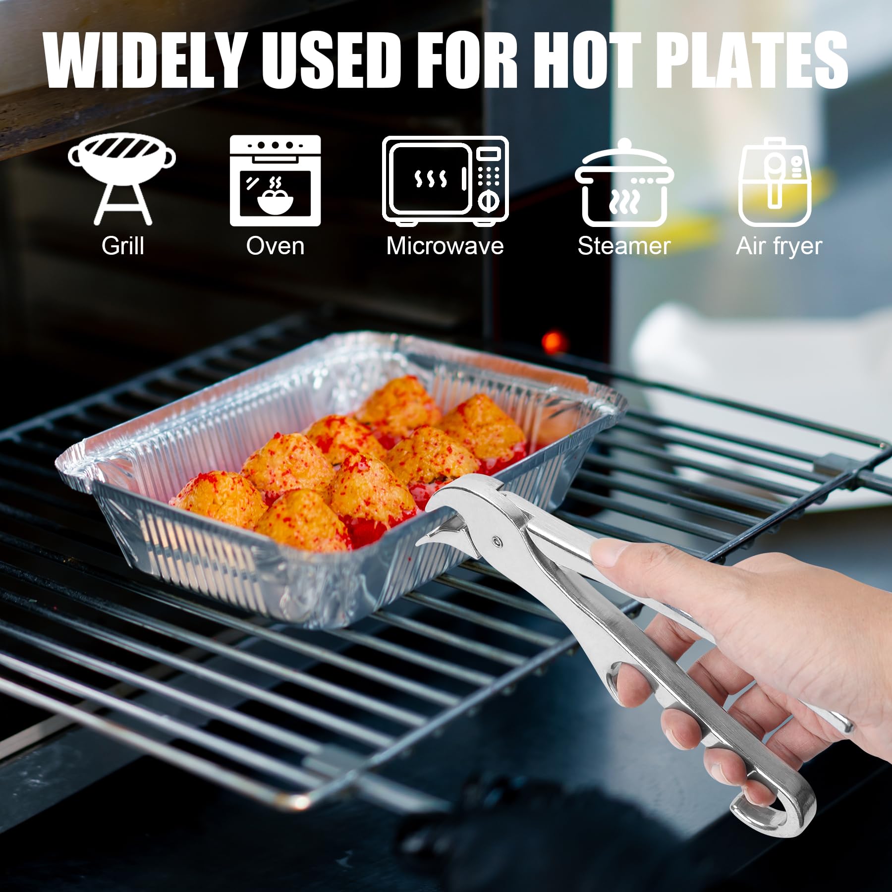 - SAFE & LABOR-SAVING DESIGN: This pan gripper is designed with safety in mind. The built-in return spring allows for easy and quick use, preventing burns when removing hot plates, pans, and trays. No more struggling with hot dishes or worrying about burns – this tool provides peace of mind in the kitchen.