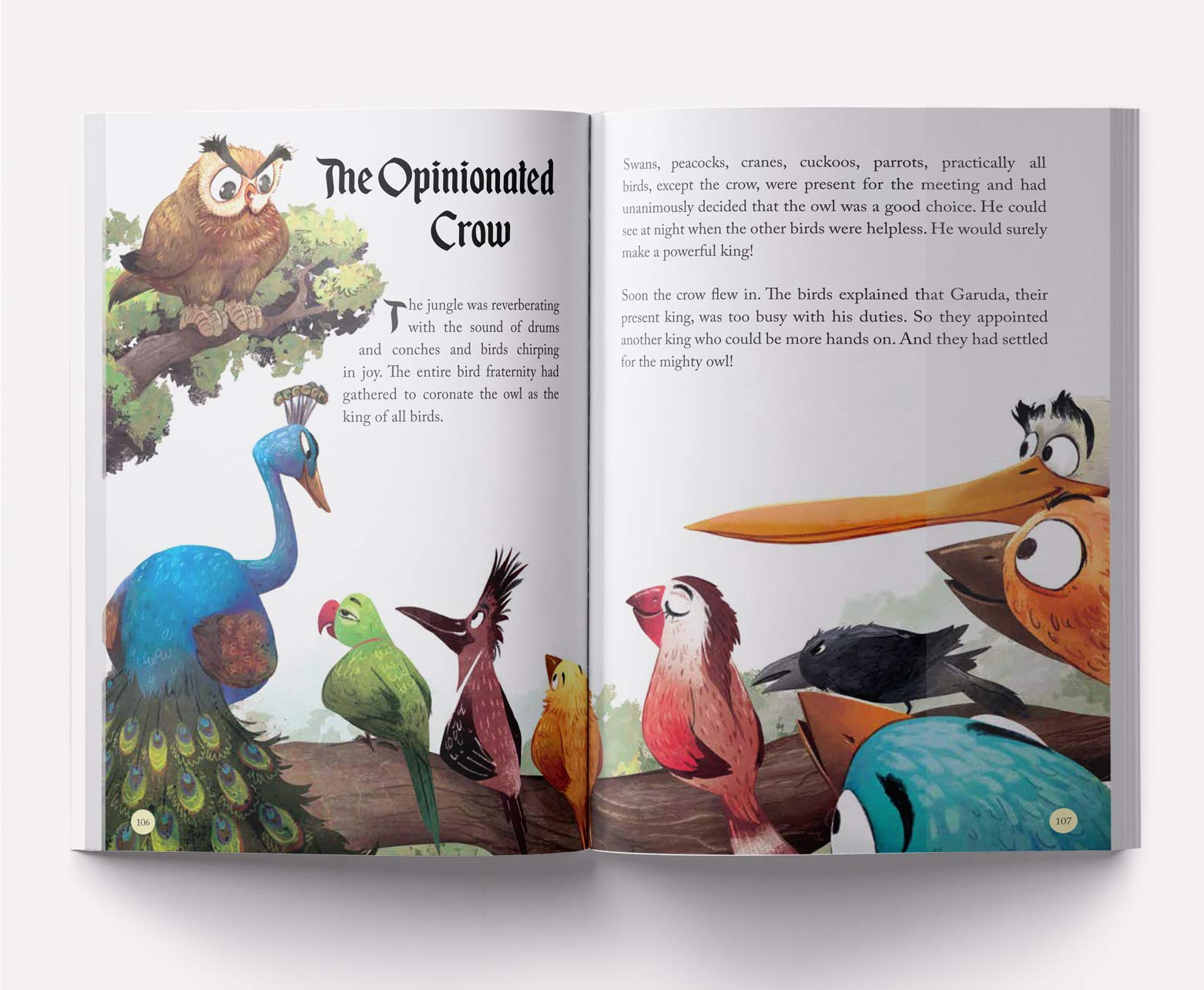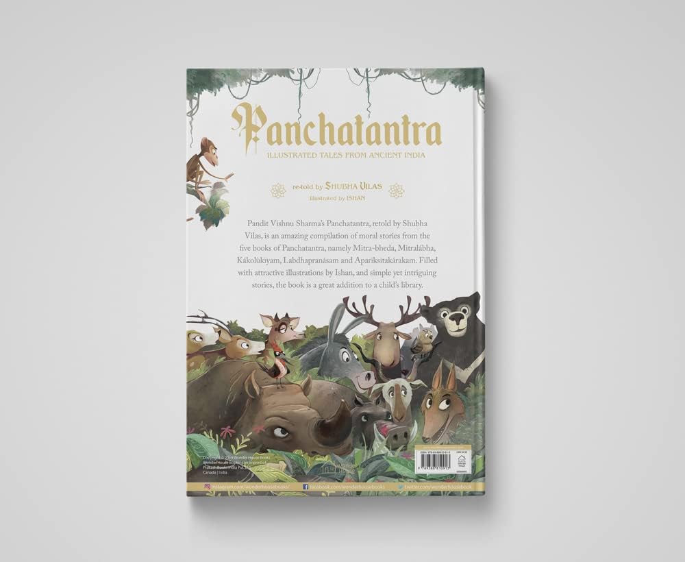 Pandit Vishnu Sharma’ s Panchatantra, retold by Shubha Vilas, is an amazing compilation of moral stories from the five books of Panchatantra, namely Mitra-bheda, Mitrala bha, Ka kolu ki yam, Labdhaprana sam and Apari ksitaka rakam. With clever moral stories and delightful illustrations, this plush hardback book is unlike any other version of the Panchatantra! Shubha Vilas adds to the stories his own energy and insights, and the stories are brought to life by Ishan’ s marvellous illustrations. Every moral lesson at the end of every chapter is a practical guide for life for children and adults alike.