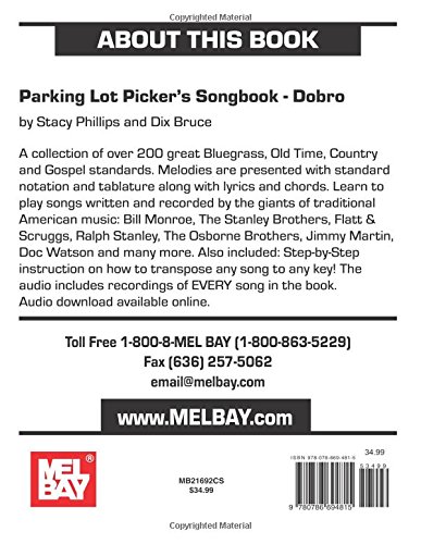 A collection of over 200 great Bluegrass, Old Time, Country and Gospel standards. Melodies are presented with standard notation and tablature along with lyrics and chords. Learn to play songs written and recorded by the giants of traditional American music: Bill Monroe, The Stanley Brothers, Flatt & Scruggs, Ralph Stanley, The Osborne Brothers, Jimmy Martin, Doc Watson and many more. Also included: Step-by-Step instruction on how to transpose any song to any key! The audio download available online include recordings of EVERY song in the book.