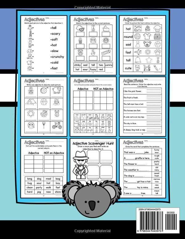 This workbook provides targeted grammar practice on adjectives to help young students improve their reading and writing skills.