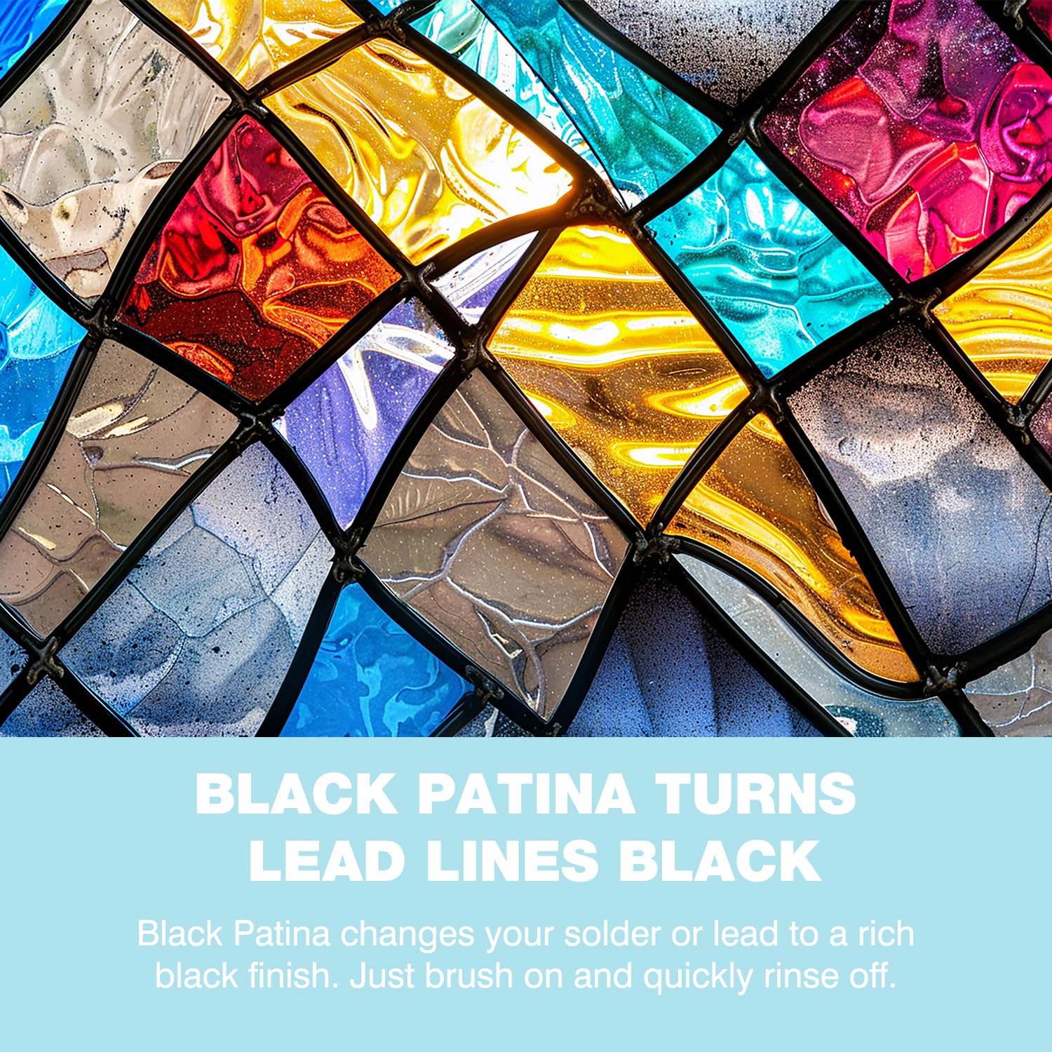 - EXCELLENT ADHESION: The rich backside patina adheres very well to zinc and black patina for solder and lead. It is designed to provide a rich, dark finish for solder and lead lines in any stained glass project