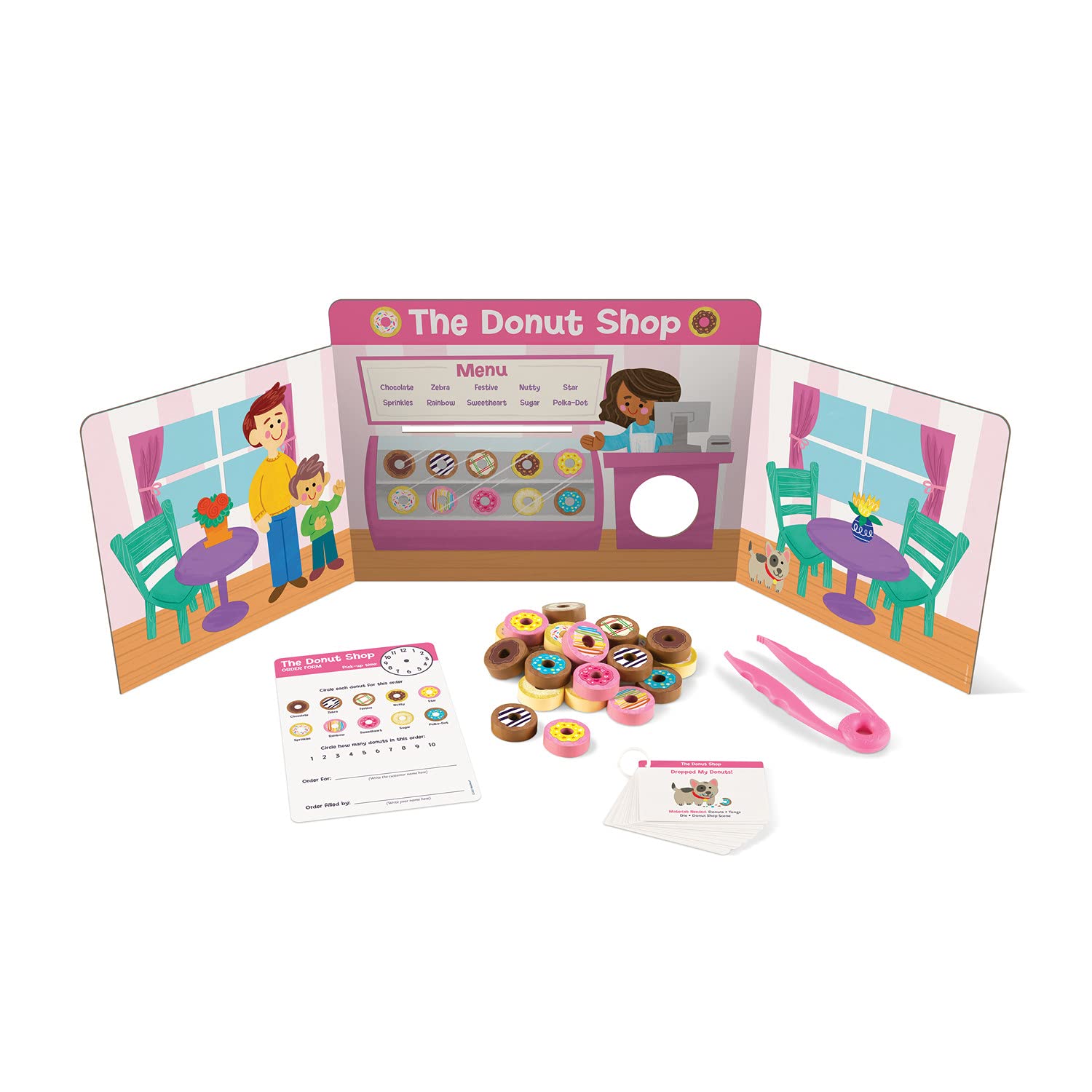- FUN LEARNING: Kids will “visit” a donut shop, post office, veterinarian office and school. Each scene has fun activities to complete, such as putting pictures in the right order to complete a story, cutting a donut out of paper, sorting mail, counting collars and so much more.