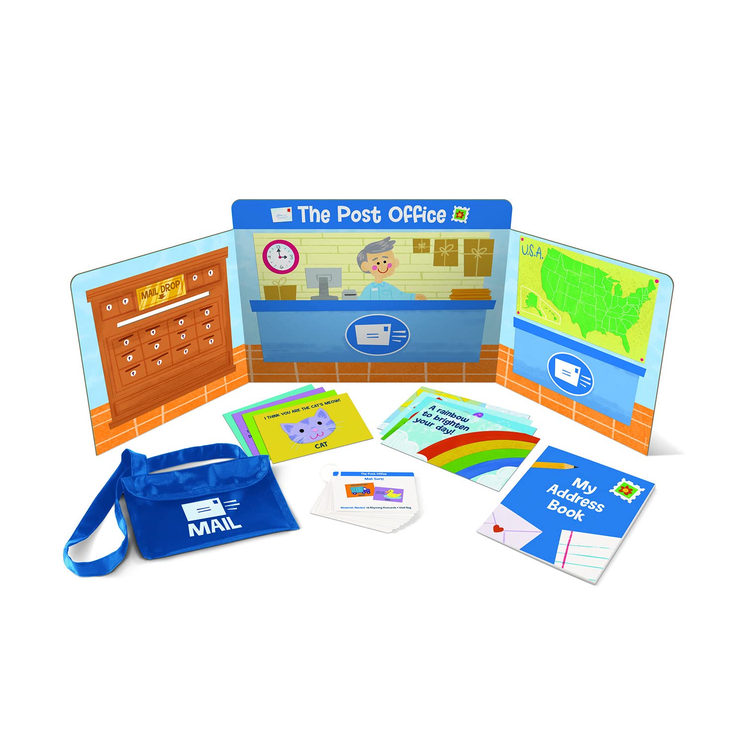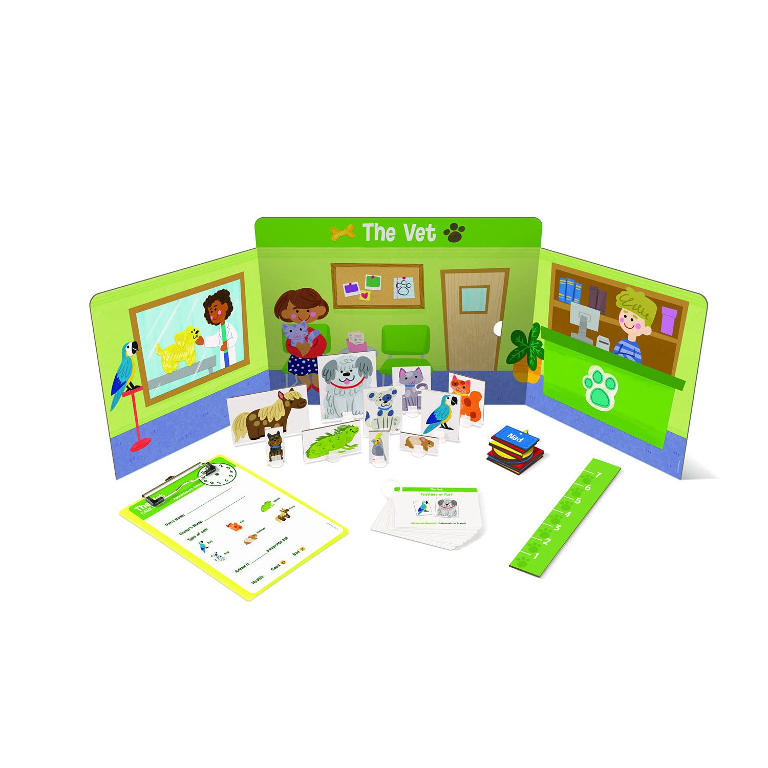 - INCLUDES: Donut shop scene, Post office scene, Veterinarian Scene, School scene, along with a guidebook with instructions for each activity.