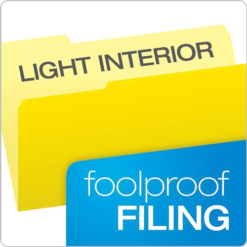Pendaflex Two-Tone Color File Folders come in brilliant shades with lighter interiors to prevent time-wasting misfiles. Create bright, color-coded files for fast, efficient filing or reverse them for double the color options. 1/3-Cut tabs in assorted positions. Legal size, yellow. 100 Per box.