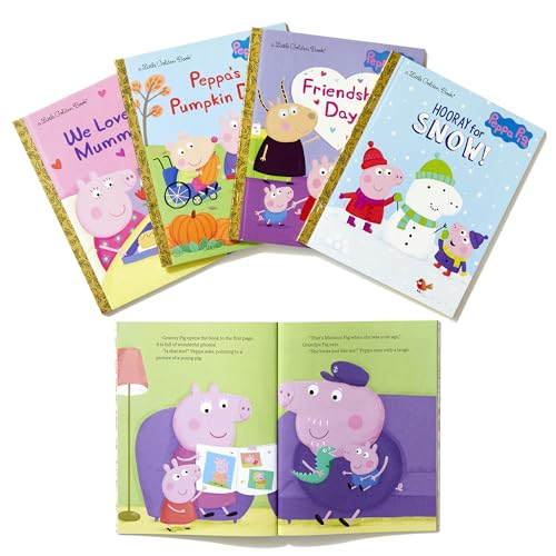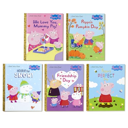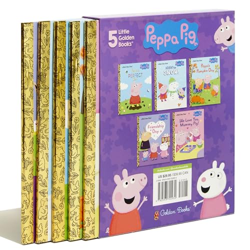 This adorable boxed set contains five Peppa Pig Little Golden Books! This boxed set features five Peppa Pig Little Golden Books, including Friendship Day, Hooray for Snow!, Peppa’s Perfect Day, Peppa’s Pumpkin Day, and We Love You, Mummy Pig! It’s the perfect gift for children ages 2 to 5. Peppa Pig is a loveable little pig who lives with her younger brother, George; Mummy Pig; and Daddy Pig. Peppa loves playing games, dressing up, visiting exciting places, and making new friends–but her absolute favorite thing is jumping up and down in muddy puddles! Peppa Pig airs daily on Nick Jr. and focuses on strong brand values that parents and kids identify with: family, friendship, trust, humor, and life experiences.