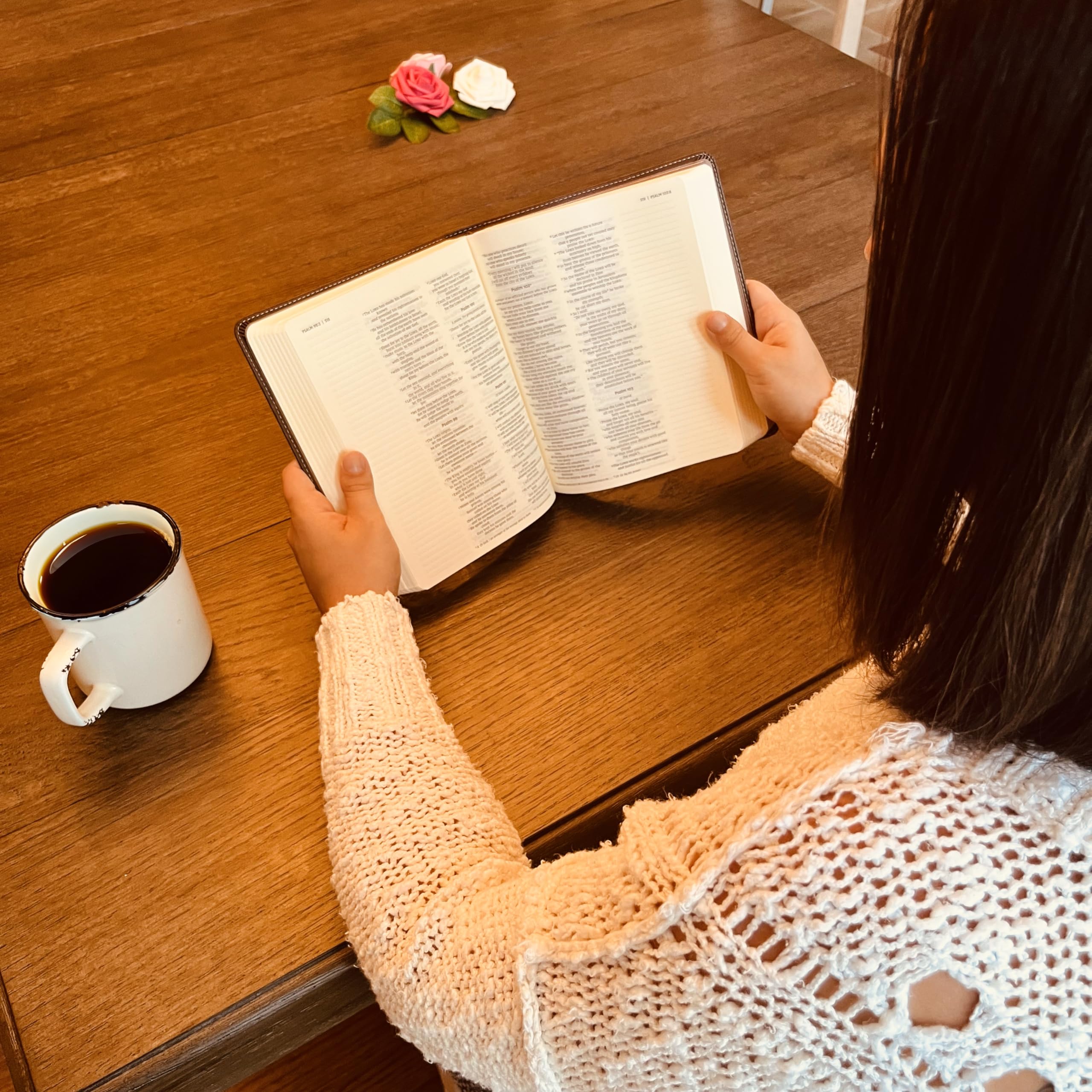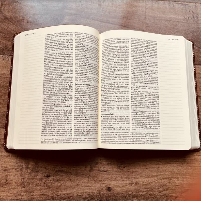 This beautifully crafted Bible, engraved and shipped with care from the USA, is perfect for daily reflection or a lasting gift. Featuring lined, wide margins for notes and personal reflections, Words of Christ in red for easy reference, with a comfortable 8.0 point font size, this portable Bible (9.0″ x 7.25″ x 1.5″) allows you to delve into scripture with ease.