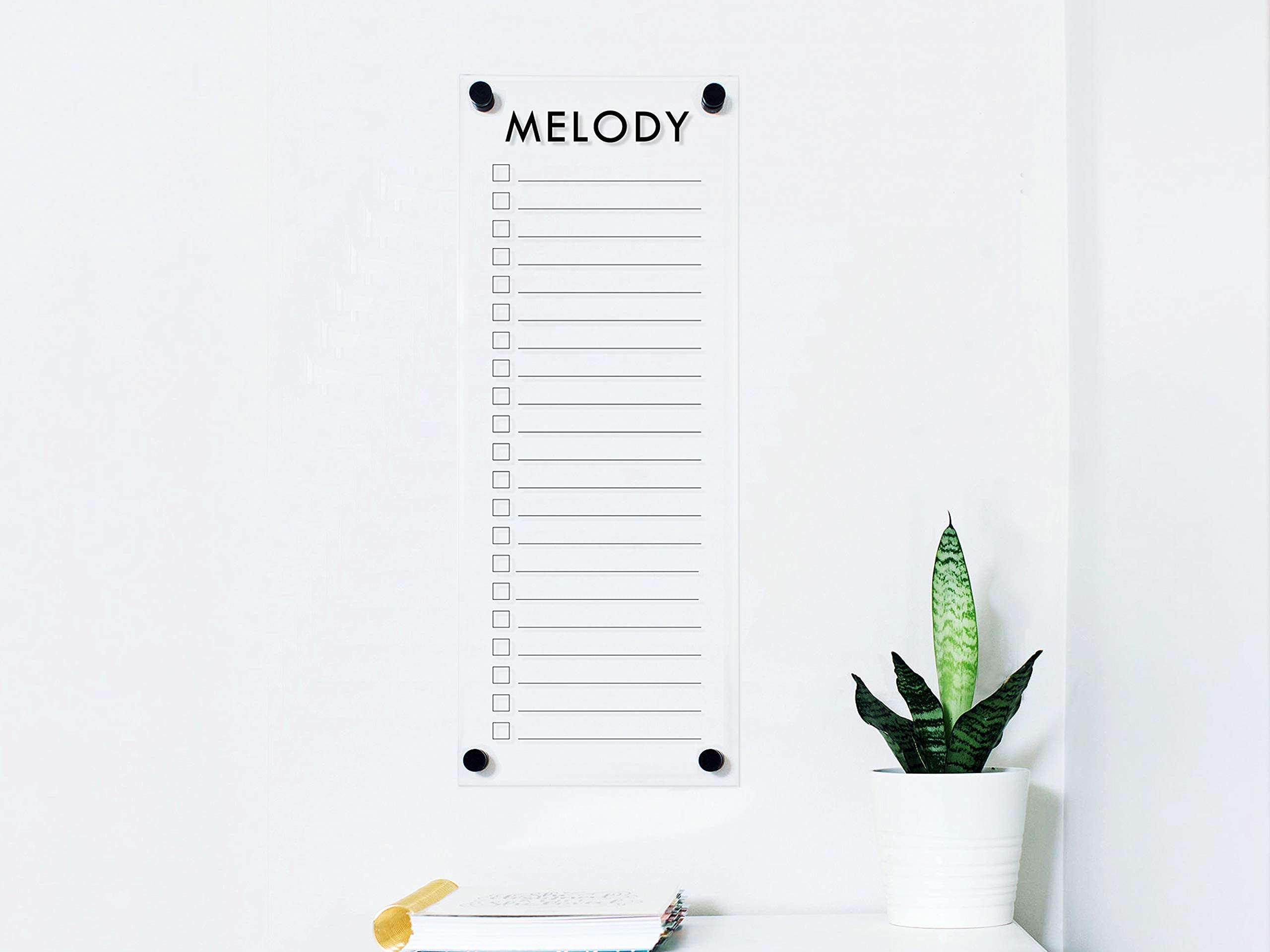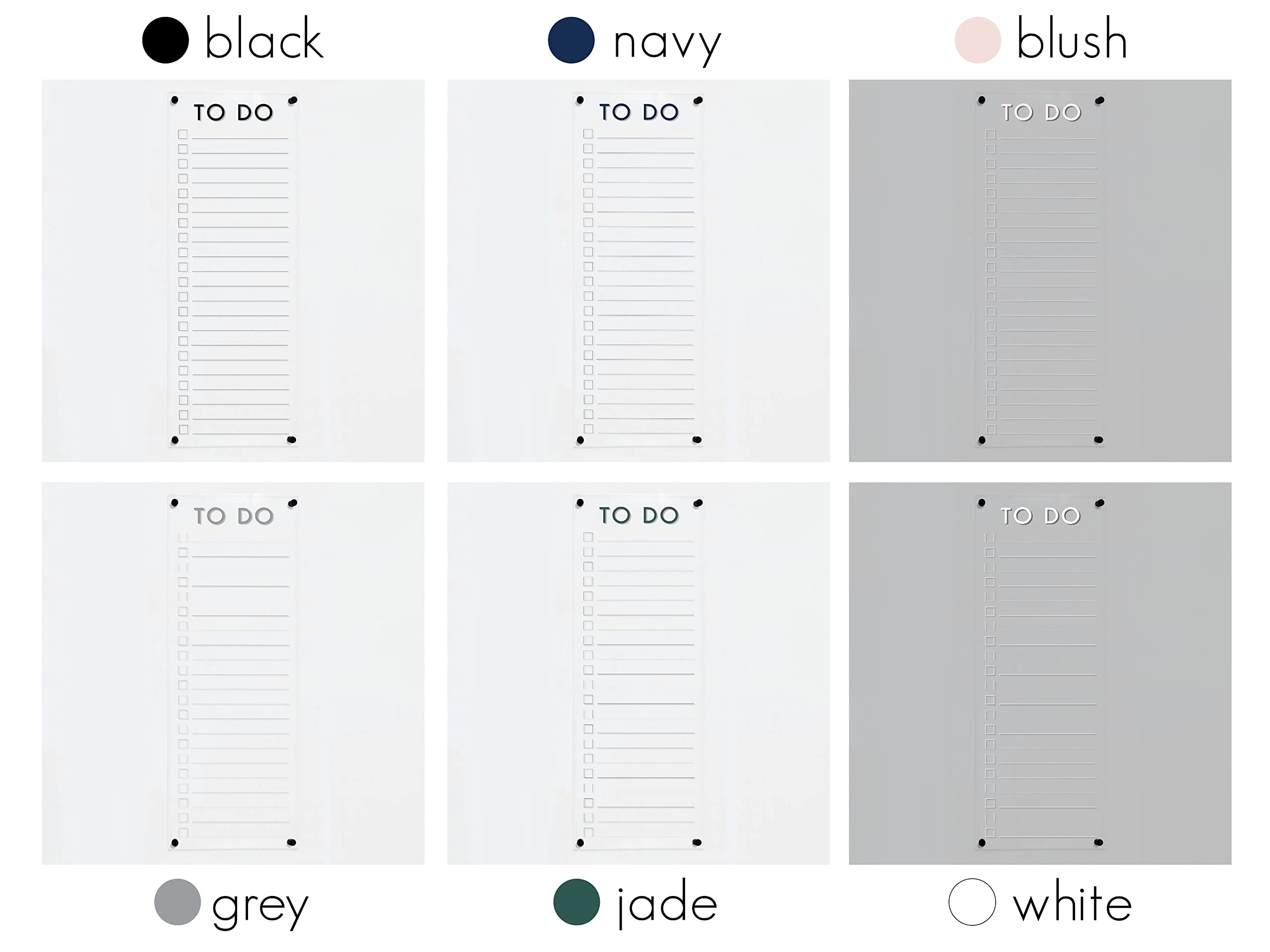 This slim acrylic to do list is perfect for keeping your weekly or daily tasks out visually for you to see…that way they aren’t taking up head space AND you don’t forget anything! This child’s chore chart is perfect for year round…you can use this to do list for school assignments AND chores….that way you don’t have a chart that is useless during the summertime. It’s easy to dry erase once you’ve finished your to do list! A great, easy way to remember all the things you don’t have time for right now, but will get to soon! The 9×23 size will fit perfect to the side of the 18.5×23 vertical acrylic calendars I sell. As well as next to a horizontal 23×31 calendars I sell. The 14×38 fits beside our 26×38 vertical calendar. When I custom make your acrylic to do list, it’s professionally printed on the back…aka it’s not a vinyl / sticker 🙂 It will last forever and never rub off! Perfect for adding a modern and chic feel to any room. These are a memorable gift too! PRODUCT DETAILS – Available in 9×23 or 14×38 vertical orientation – Acrylic is a high quality, guaranteed defect free, 1/4″ thick acrylic – The 9×23 and 14×38 both have 21 lines. – 14×38 has a longer amount of room to write on each line. What’s included? -Acrylic to do board, your color choice of 4 standoffs & hardware for mounting, & template to help you center/level the calendar and drill the holes.