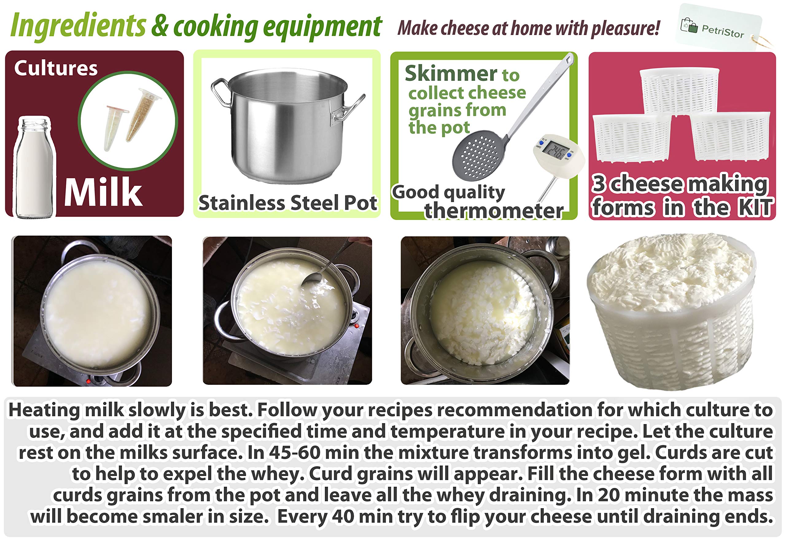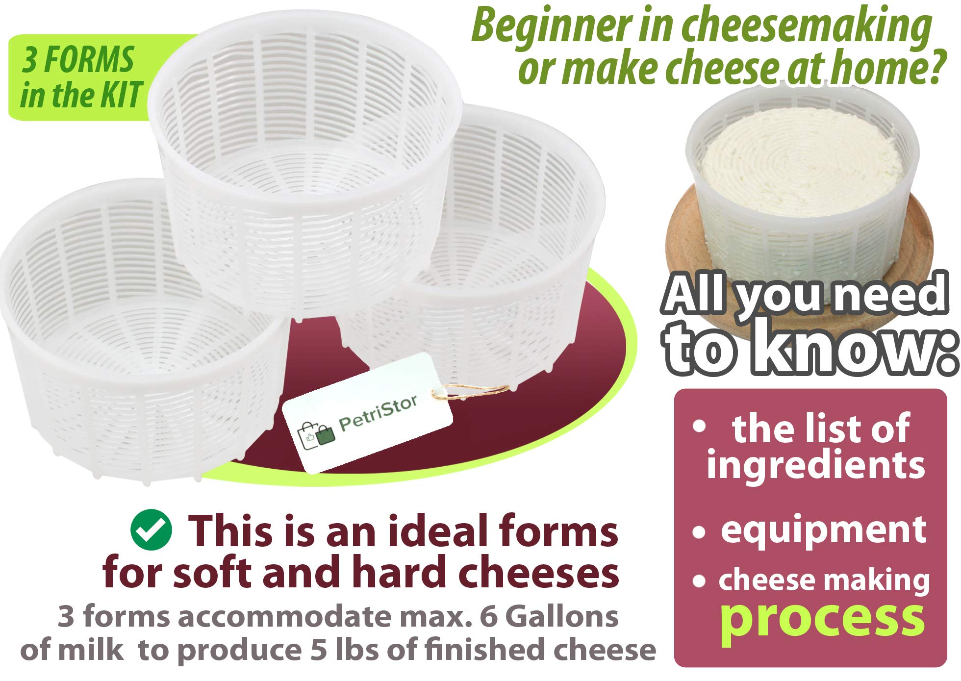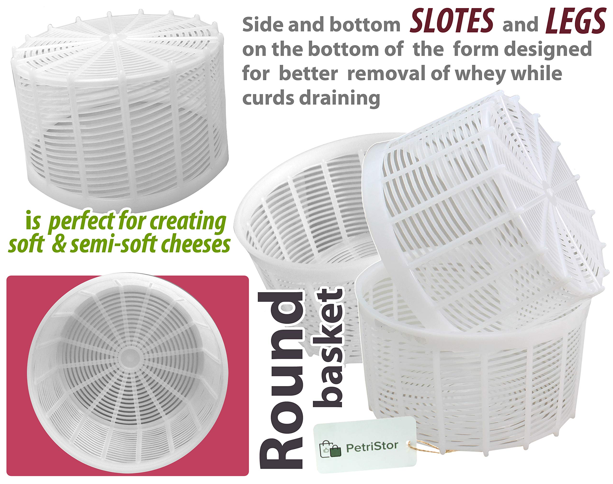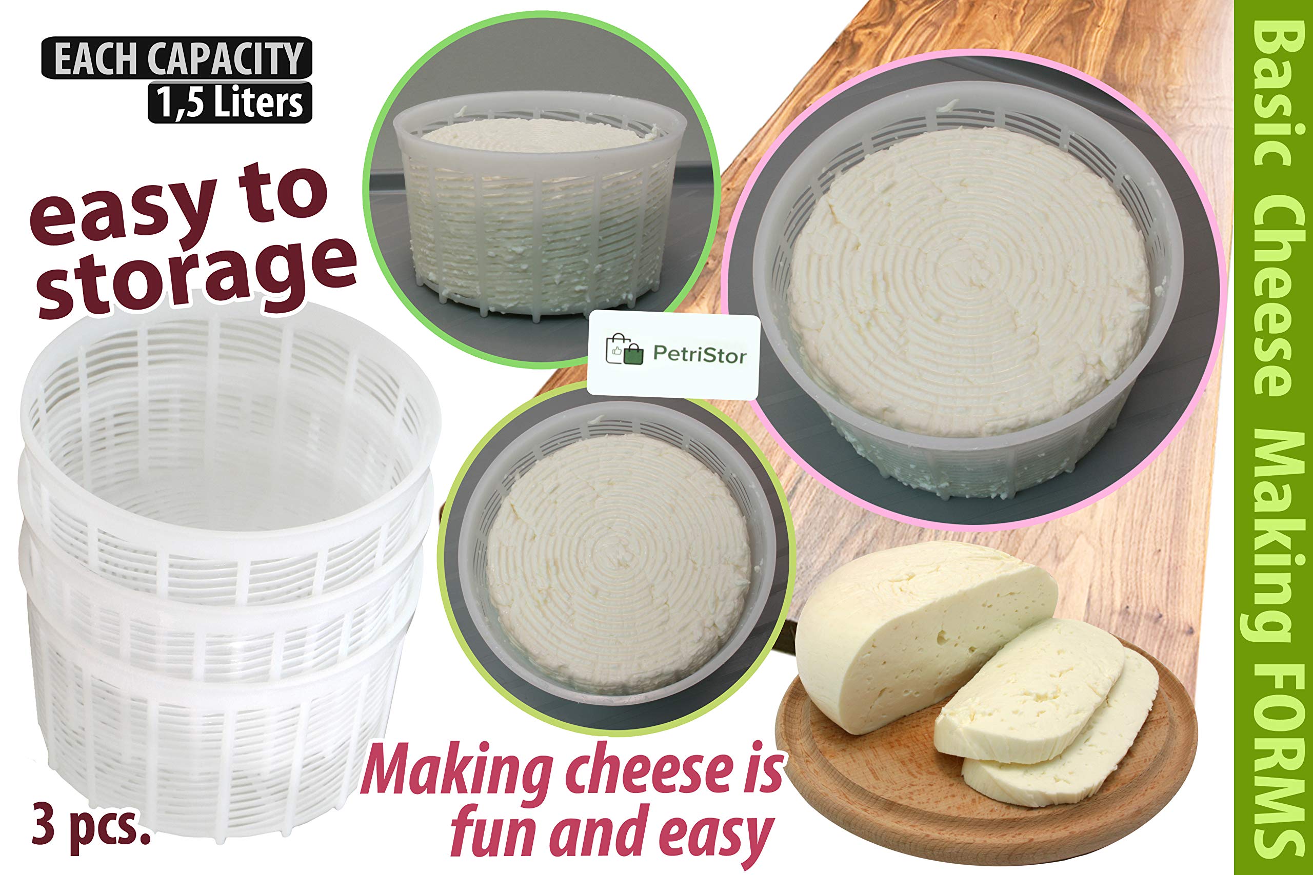 PetriStor 3pcs Soft Cheese Mold for Cheese Making 1.25QT – Medium Cheese Mold – Homemade Cheese Making Supplies – Cream Cheese Form Mold – Molde Para Queso Fresco Casero – Cheese Making Basket