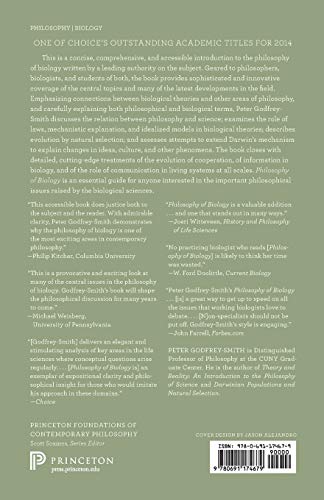 An essential introduction to the philosophy of biology This is a concise, comprehensive, and accessible introduction to the philosophy of biology written by a leading authority on the subject. Geared to philosophers, biologists, and students of both, the book provides sophisticated and innovative coverage of the central topics and many of the latest developments in the field. Emphasizing connections between biological theories and other areas of philosophy, and carefully explaining both philosophical and biological terms, Peter Godfrey-Smith discusses the relation between philosophy and science; examines the role of laws, mechanistic explanation, and idealized models in biological theories; describes evolution by natural selection; and assesses attempts to extend Darwin’s mechanism to explain changes in ideas, culture, and other phenomena. Further topics include functions and teleology, individuality and organisms, species, the tree of life, and human nature. The book closes with detailed, cutting-edge treatments of the evolution of cooperation, of information in biology, and of the role of communication in living systems at all scales. Authoritative and up-to-date, this is an essential guide for anyone interested in the important philosophical issues raised by the biological sciences.