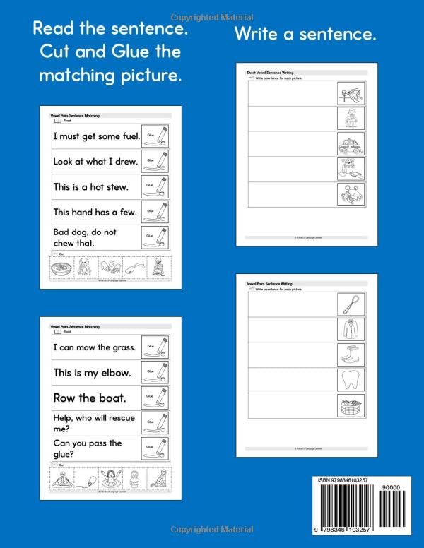 Help your student strengthen their reading comprehension and writing skills with this fun and educational workbook! This workbook combines phonics-based reading practice with engaging, hands-on activities to build literacy skills and boost confidence. Features: Phonics-Based Sentence Reading: Sentences are grouped by phonics skills, making it easy for students to build on what they know. The progression starts with short vowels, then moves to blends, digraphs, final e long vowels, and long vowel pairs. Interactive Picture Matching: Students read simple sentences and cut out matching pictures to glue next to each sentence. This activity enhances decoding skills, helps children find the main idea, and encourages critical thinking. Writing Practice: Students write a sentence next to each picture, choosing to copy the sentence provided or create their own. This builds handwriting skills, promotes creative writing, and strengthens vocabulary and spelling using the reading section as a guide. Who Is This Workbook For? This workbook is ideal for: Classroom Students: A valuable resource for teachers to reinforce phonics and reading comprehension in class. Homeschooling Families: A structured, skill-building tool for literacy development at home. English Language Learners (ELLs): Designed to support vocabulary growth and language fluency. Give your child the tools they need to succeed in reading and writing. This phonics-based workbook makes learning fun and effective for beginning readers!