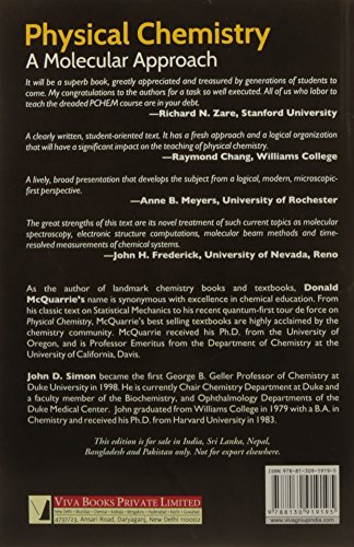 As the first modern physical chemistry textbook to cover quantum mechanics before thermodynamics and kinetics, this book provides a contemporary approach to the study of physical chemistry. By beginning with quantum chemistry, students will learn the fundamental principles upon which all modern physical chemistry is built. The text includes a special set of “Math Chapters” to review and summarize the mathematical tools required to master the material. Thermodynamics is simultaneously taught from a bulk and microscopic viewpoint that enables the student to understand how bulk properties of materials are related to the properties of individual constituent molecules. This new text includes a variety of modern research topics in physical chemistry as well as hundreds of worked problems and examples.