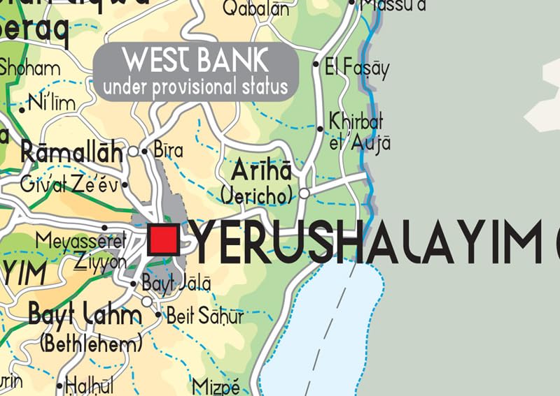 • The clear text and vibrant colors make the map easy to read. The map provides an invaluable visual reference for anyone looking to explore Israel, understand the country’s geography, or trace the origin of their family’s roots.