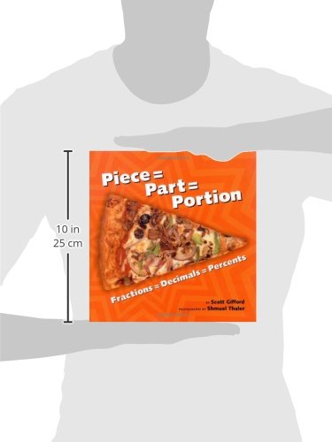 Just as hola and bonjour mean hello, in the language of math, fractions, decimals, and percents describe the same thing in slightly different ways. So why are so many kids bewildered by this math basic? Because rarely is the explanation of this important concept presented so clearly. Now there’!?s PIECE = PART = PORTION, to offer clarity with hip graphic presentation to boot. Finally!Engaging antidote to mathphobia. Photography will appeal to visual learners.