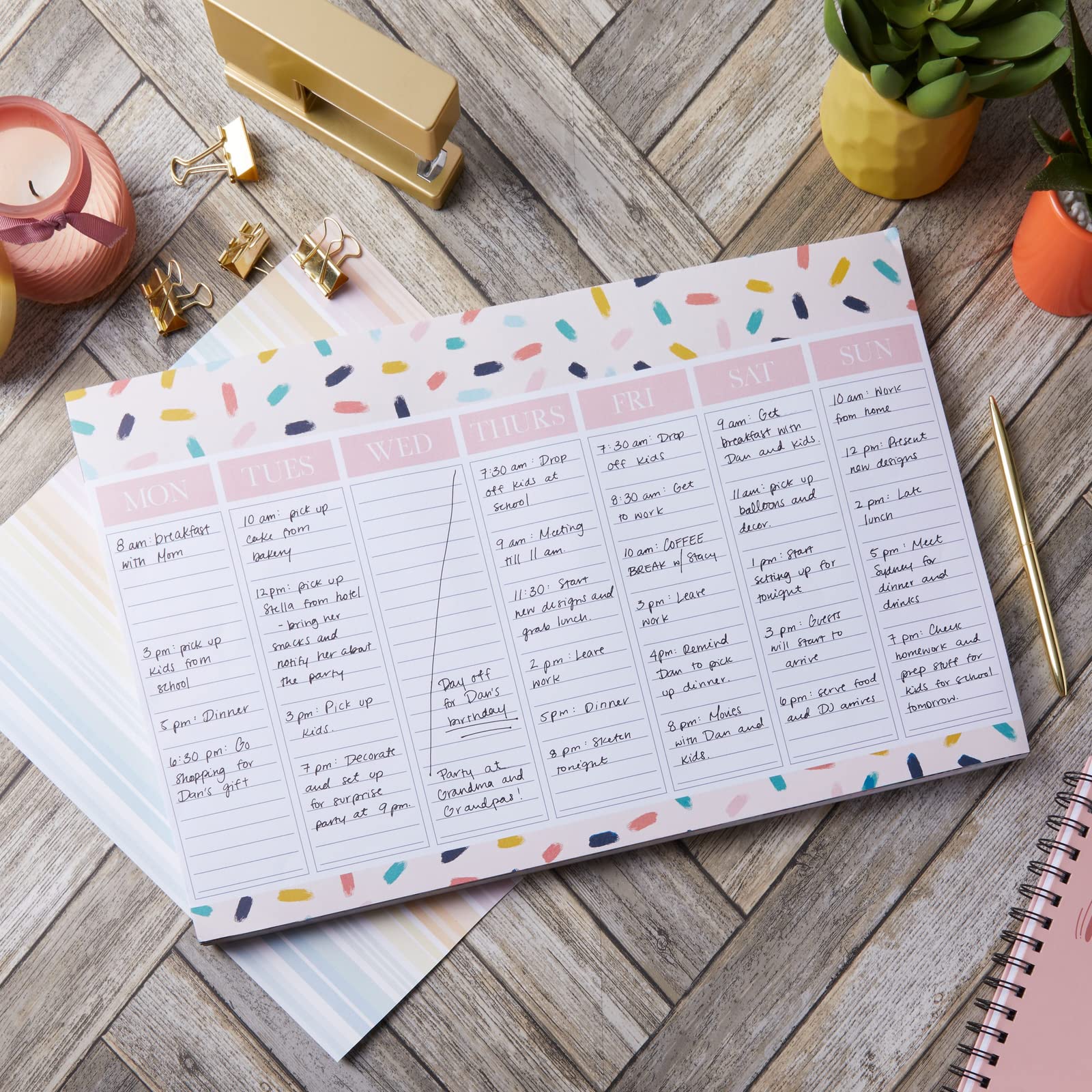 - Weekly Desk Calendar: Use this daily planner tear off pad to stay on top of your busy schedule while at work, school, or simply staying on top of daily tasks around your home