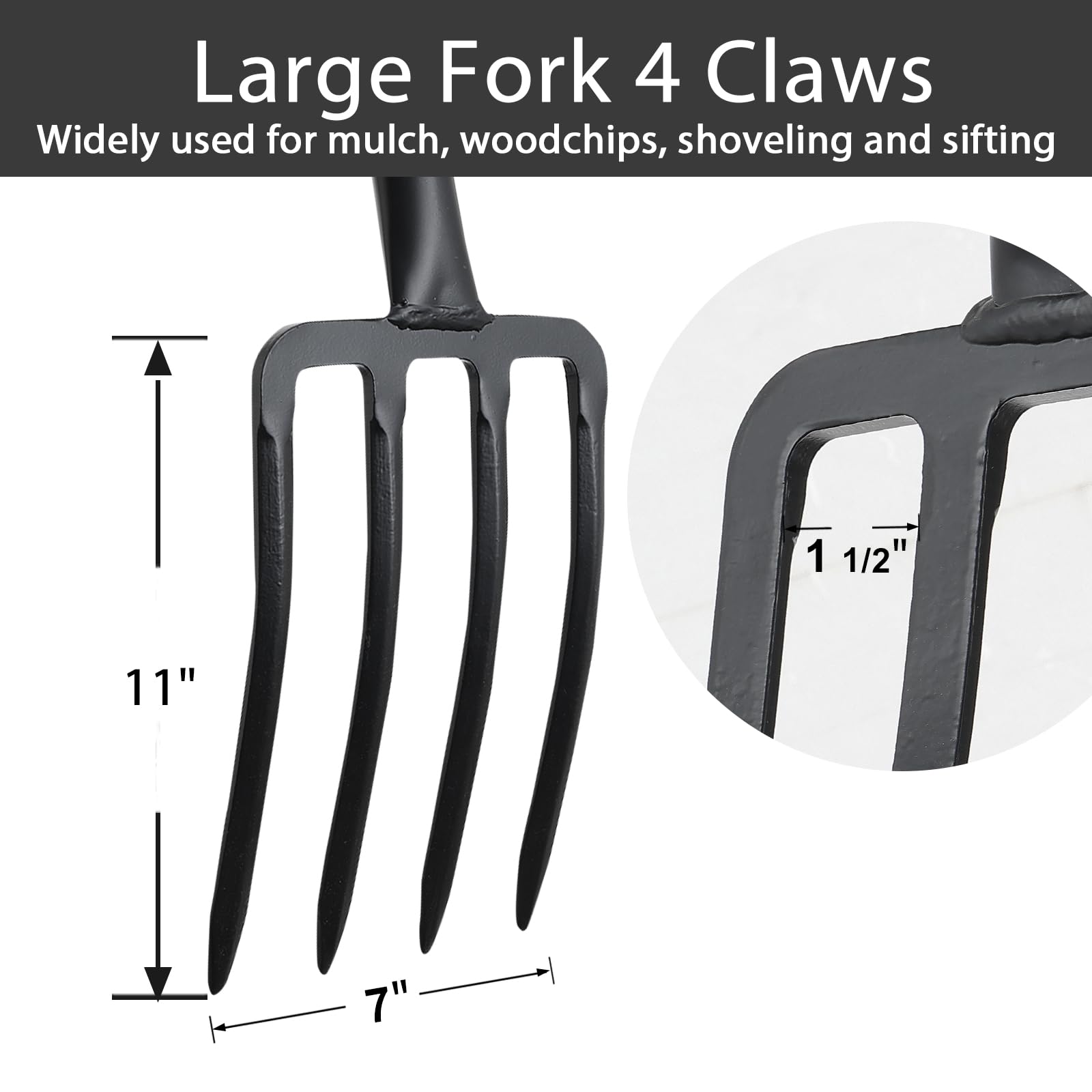 - 11″ fork length 4 claws which are well welded and sharpened at the tips to easily get root crops out of the ground.