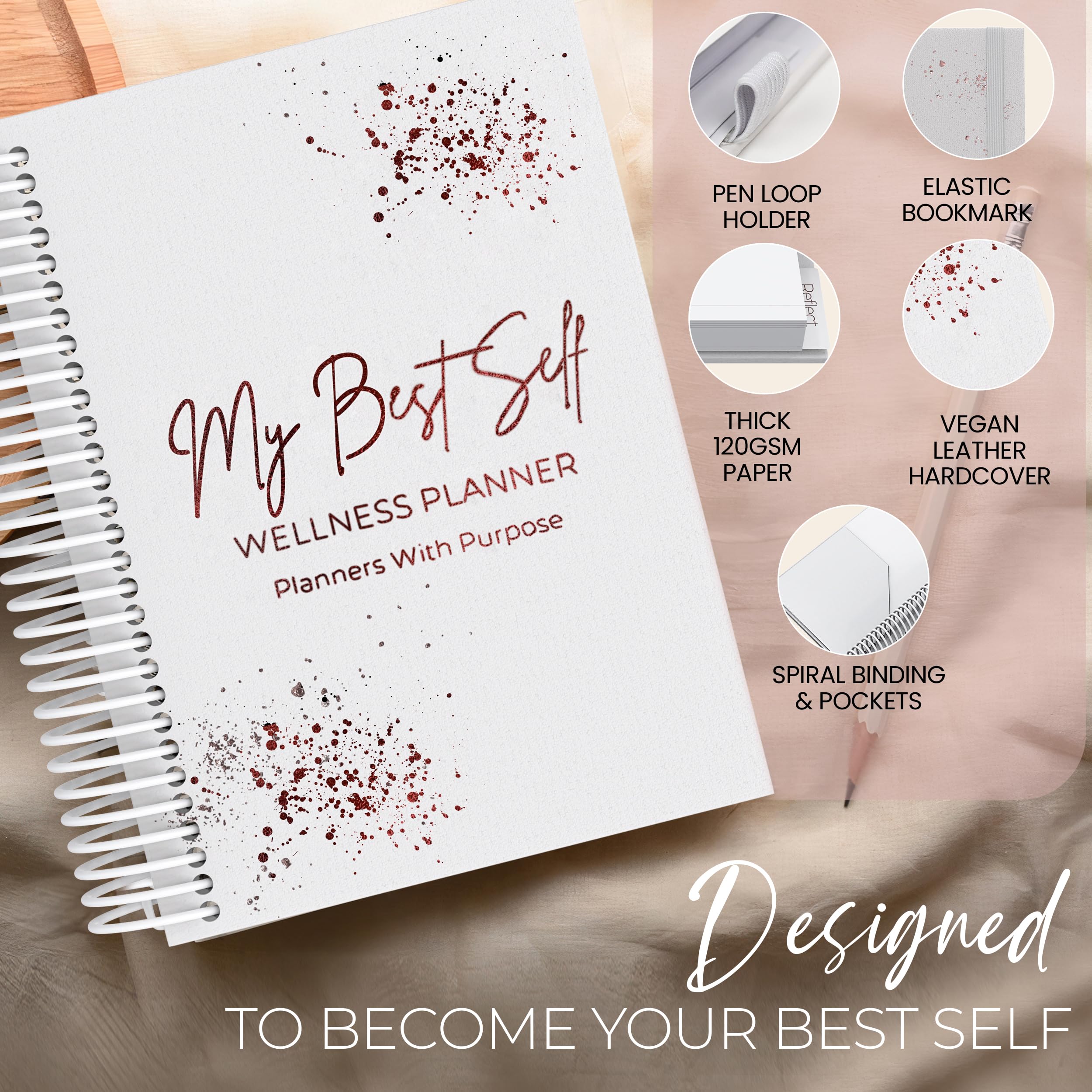 - 90 DAY WELLNESS DIARY WITH PROMPTS to Practice Self-Love, Gratitude, Mindfulness: Begin your day with focus, feelings, your schedule and end with reflection, accomplishments, and self-care using this wellness journal. Includes enough pages for three months with thoughtfully designed prompts, such as weekly challenges, daily highlights, inspirational quotes, affirmations, and self-reflection.