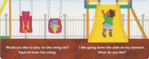 This board book promotes social development and communication skills for toddlers through the context of outdoor play.