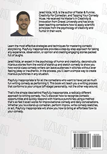 Make standup comedy writing just as fun and easy as hanging out with hilarious friends! “I know all the tricks. I assume everybody does. But people like me because I won’t use them… and if I do, they can tell.” – Richard Pryor, on the art of stand-up comedy In Playfully Inappropriate, author and comedian Jared Volle, an expert in the psychology of humor and creativity, offers comedians and actors a radically different approach to writing comedy. You will discover how to recognize comedic opportunities and quickly respond with hilarious punchlines, using a method that’s so fast it even works for improvisational comedy and daily conversations. In this complete guide to writing and performing stand-up comedy, you will learn: The most effective comedy strategies and techniques for mastering comedic storytelling, utilizing a hilarious step-by-step approach for taking any experience, observation, or opinion and creating engaging stories guaranteed to make people laugh Examples and quotes from the best comedians in the business, analysis of why they consistently make audiences laugh… and how you can use their skills to improve your stand-up comedy delivery and performances How to make your comedy writing and storytelling authentic and consistent with your hysterical off-stage personality The psychology behind why people laugh and how audiences judge funny jokes and stand-up comedy stories – the 5 stages of how punchlines “create” humor 3 types of triggers guaranteed to make your joke punchlines ‘pop’ and trigger spontaneous laughter from even the toughest audiences How to troubleshoot common comedy issues, including stagefright and performance anxiety, weak tension and writer’s block, with 4 helpful walk-through examples Whether you are a struggling stand-up comedian or comedienne, a gifted and experienced edgy Black comedian, or you use subtle sarcasm or parody in your comedy performances, Playfully Inappropriate will give you proven tools to expand your comedy writing skills and incorporate innovative new approaches for authentic storytelling and delivering funny punchlines. “There’s no doubt that reading this book will improve your comedy and comedy writing to the point that it becomes a superpower.” – Comedypreneur.com Page Up and Order Now.