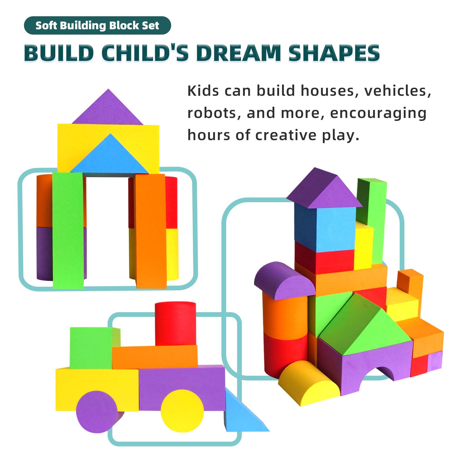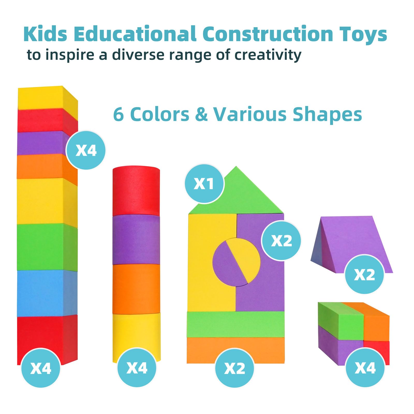 These soft foam blocks support early development of fine motor skills, spatial reasoning, and creativity for toddlers.
