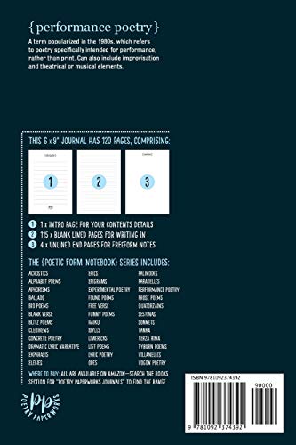 Poetic Form (Performance Poetry) Notebook: Blank Lined Notebook (College Ruled Composition Book): Motivational Poem & Verse Creative Writing Prompt … Paperworks Journals Poetic Form Notebooks)