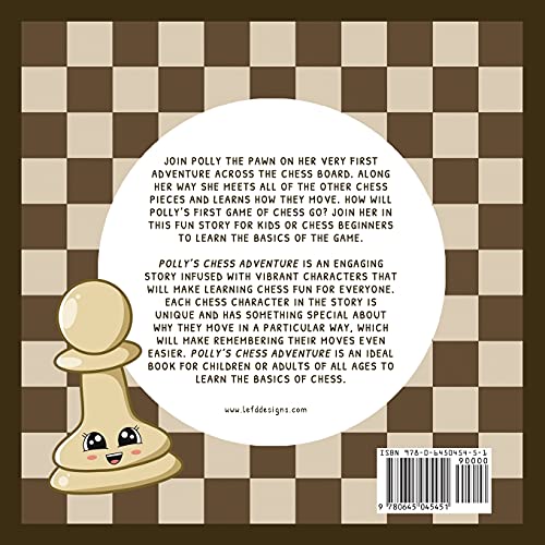 Polly’s Chess Adventure – A Fun Book for Kids to Learn How to Play Chess Through Polly the Pawn’s Adventures! Join Polly the Pawn on her very first adventure across the chess board. Along her way she meets all the other chess pieces on the board and learns how they move. How will Polly’s first game of chess go? Join her in this fun story for kids or chess beginners to learn the basics of the game. Polly’s Chess Adventure is an engaging story infused with vibrant characters that will make learning chess fun for everyone. Each chess character in the story is unique and has something special about why they move in a particular way, which will make remembering their moves even easier. Polly’s Chess Adventure is an ideal book for children or adults of all ages to learn the basics of chess. It is the perfect gift for chess beginners or chess lovers! Available in both paperback and hardcover (8.5 x 8.5 inch). Polly’s Chess Adventure is published by LEFD Designs. See more at, www.lefddesigns.com