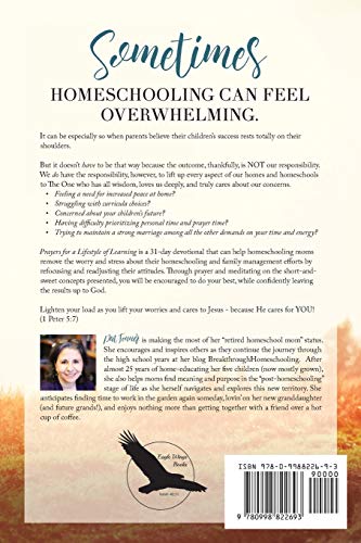 Prayers for a Lifestyle of Learning is a 31-day series of devotionals just perfect for the busy homeschooling mom. Pray for every aspect of your home and school in these five areas: Giving God Praise Seeking Revival Praying for Ourselves Praying for Our Families Praying for Our Homeschools Also included in your purchase is access to a free journal that you can print out and use for your own thoughts, prayers, and Scripture references as you work through this book. “Too busy for quiet time?” The topics presented are bite-sized and independent of each other: pick it up and use it to deal with specifics issues you may be dealing with each day when you have a few minutes. Gradually you’ll find yourself developing the habit of turning to the Word with every home- and school-related issue! And don’t forget the bonus: check out the link inside to a FREE audiobook version for those of you who are on-the-go learners…