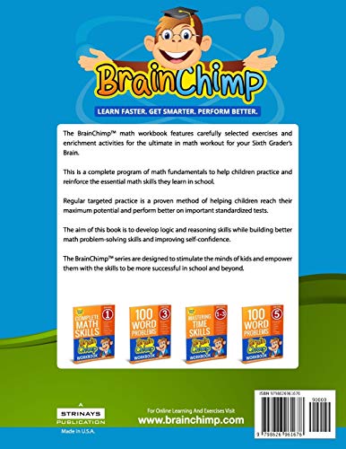 Looking For A Proven Way To Improve Your Sixth Grader’s Pre-Algebra Skills?Get This Expertly Crafted Workbook From The Amazon Bestselling “BrainChimp” Series”Pre-Algebra For Sixth Graders” by BrainChimp is packed with carefully selected practice exercises to help sixth grade students develop and reinforce Pre-Algebra skills beyond basic school work.Regular practice is important for students to sharpen their skills and improve their speed. Extra practice also helps improve performance on tests, exams and quizzes.Book Features:Pre-Algebra for children Grade-6 (Ages 11-12).Carefully selected Pre-Algebra practice exercises.Detailed Answers in a separate Answer Key Section.Work area for every problem to work out the solutions.Skills Covered:Variables and Expressions.Absolute Value.Equations.Powers and Expressions.Square Roots & Cube Roots.Ratios & Proportions.Percentages.And More.Plenty Of Practice Exercises Inside Designed To Progressively Develop Pre Algebra Skills!This book has plenty of challenging exercises to give students the competitive edge they seek. It is designed to develop strong problem-solving skills in Pre-Algebra and develop confidence in this subject.It is our hope that students will also develop a keen interest in the practical application of Math skills while building a strong foundation in Pre-Algebra.Answer Key is included to measure progress and guide practice.Stimulate The Mind. Boost Brain Power.The BrainChimp series of books are designed to stimulate the minds of children and empower them with the skills to be more successful in school and beyond. The ultimate goal of our books is to boost your child’s Brain Power while working on sharpening Academic skills.